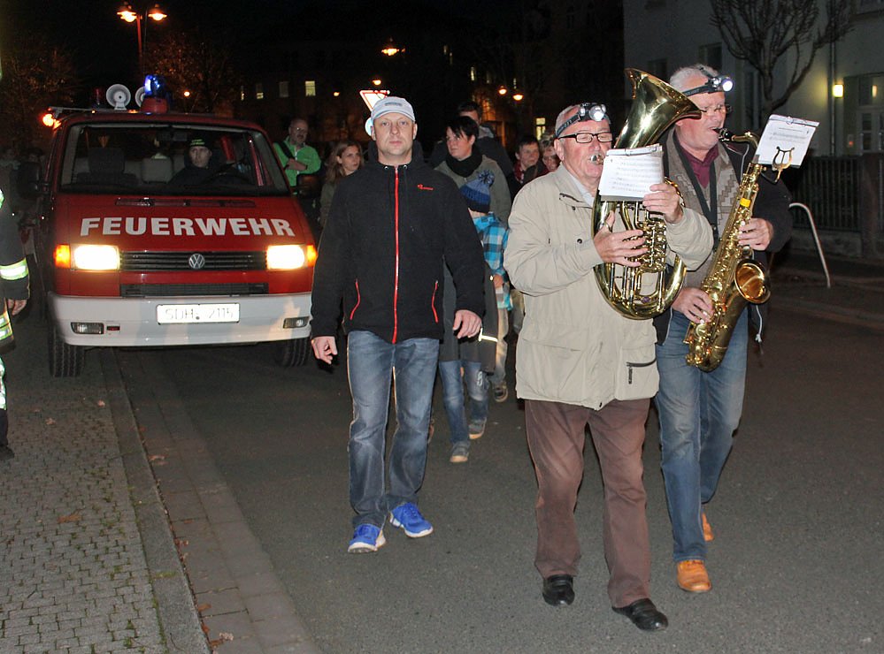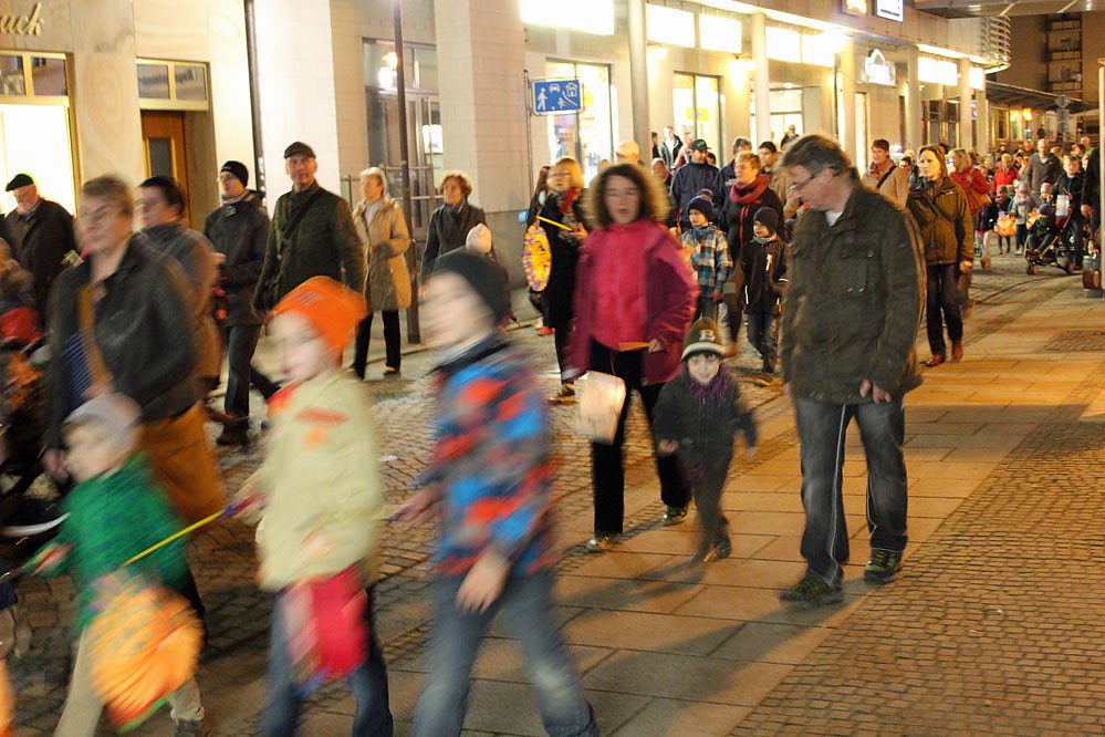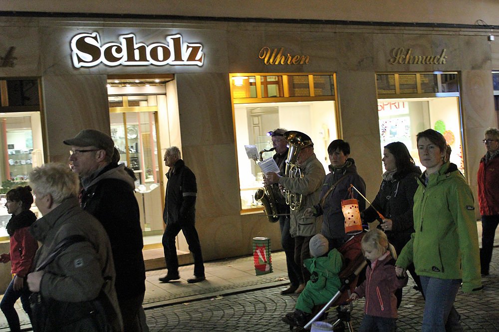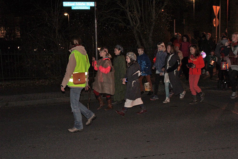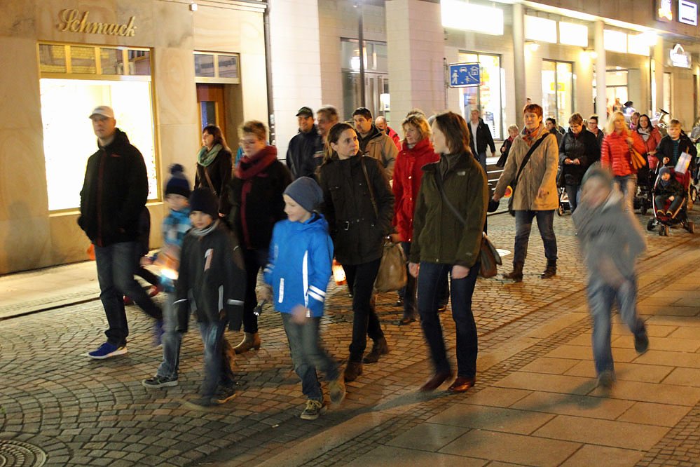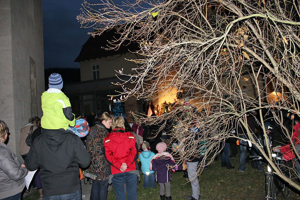 Nach dem Martinsspiel ging es mit einem Lampionumzug zur evangelischen Trinitatiskirche. Viele Teilnehmer nahmen bei dem schönem und milden Wetter teil.