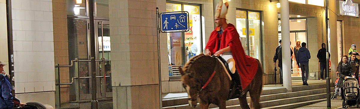 Nach dem man in den letzten Jahren kein Pferd und Reiter fand, dass bei so einem Umzug sicher durch die Stadt reitet, war das dieses Jahr sehr zur Freude der Kinder wieder anders,