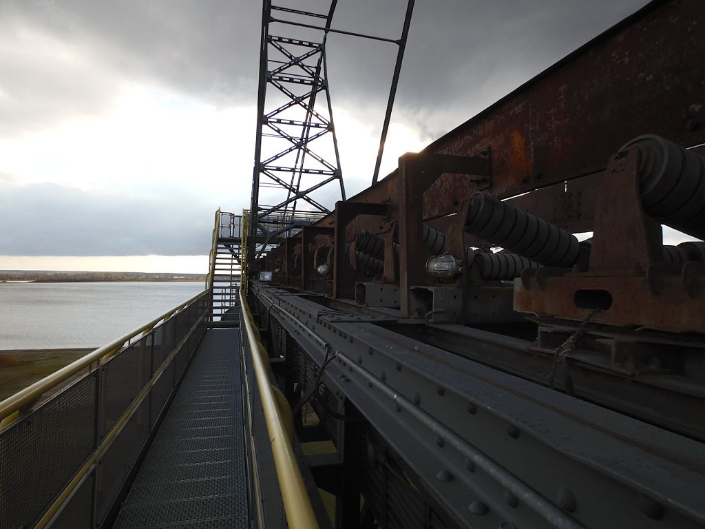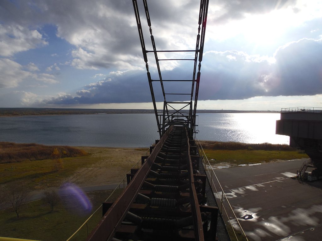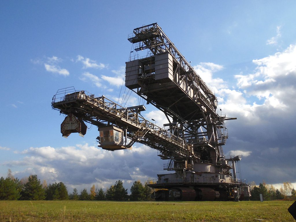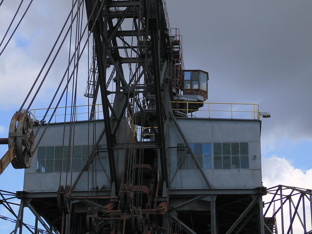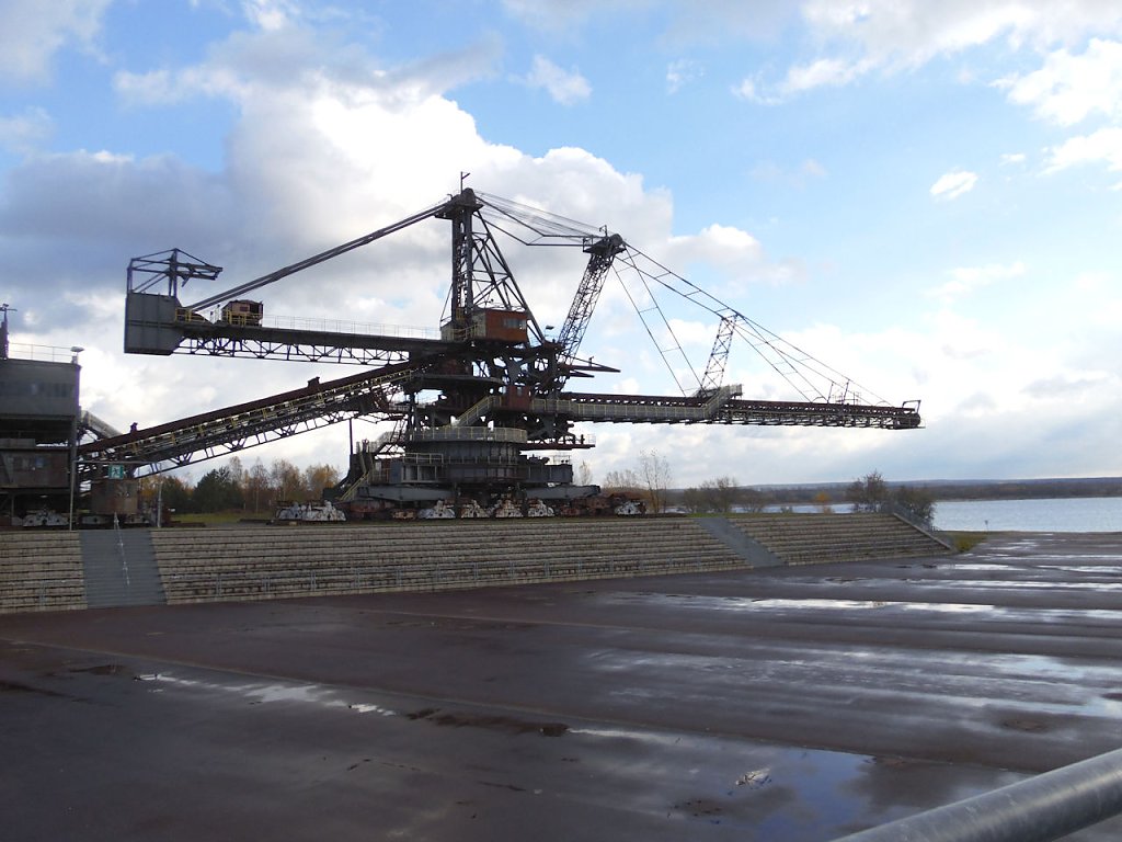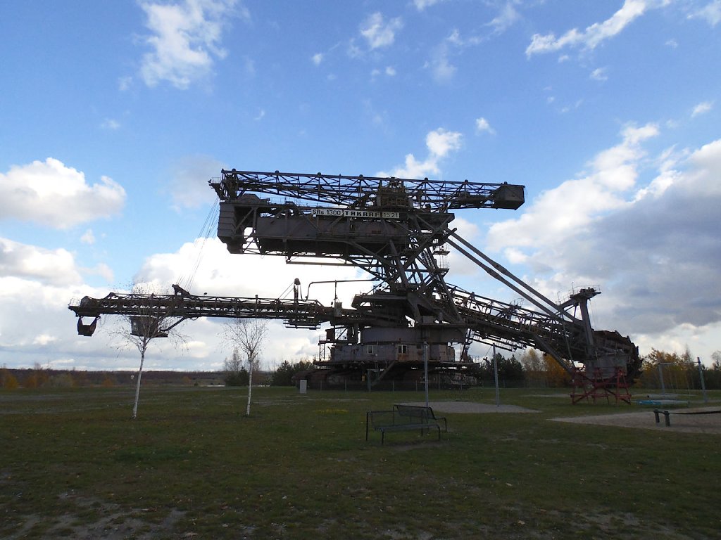 Einer der jüngsten Bagger, die hier stehen ist der "Big Wheel". Der Schaufelradbagger wurde 1984 von der Firma TAKRAF gebaut, er hat ein stolzes Gewicht von 1718 Tonnen, die Höhe beträgt 31 Meter. Drei bis fünf Personen waren nötig, um dieses 74,5 Meter breite Ungetüm zu steuern.