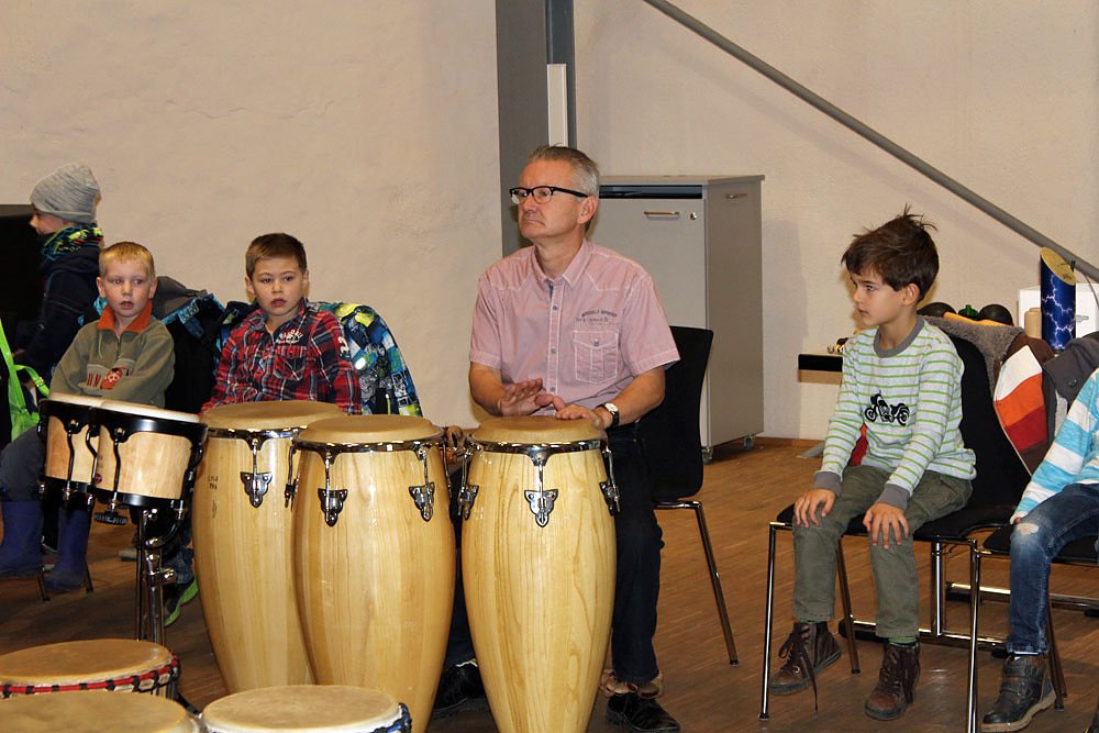 Das es den Kinder viel Spaß machte, merkte man, als sie schon mal mit Klaus Hagedorn für kn mal kräftig trommelten.