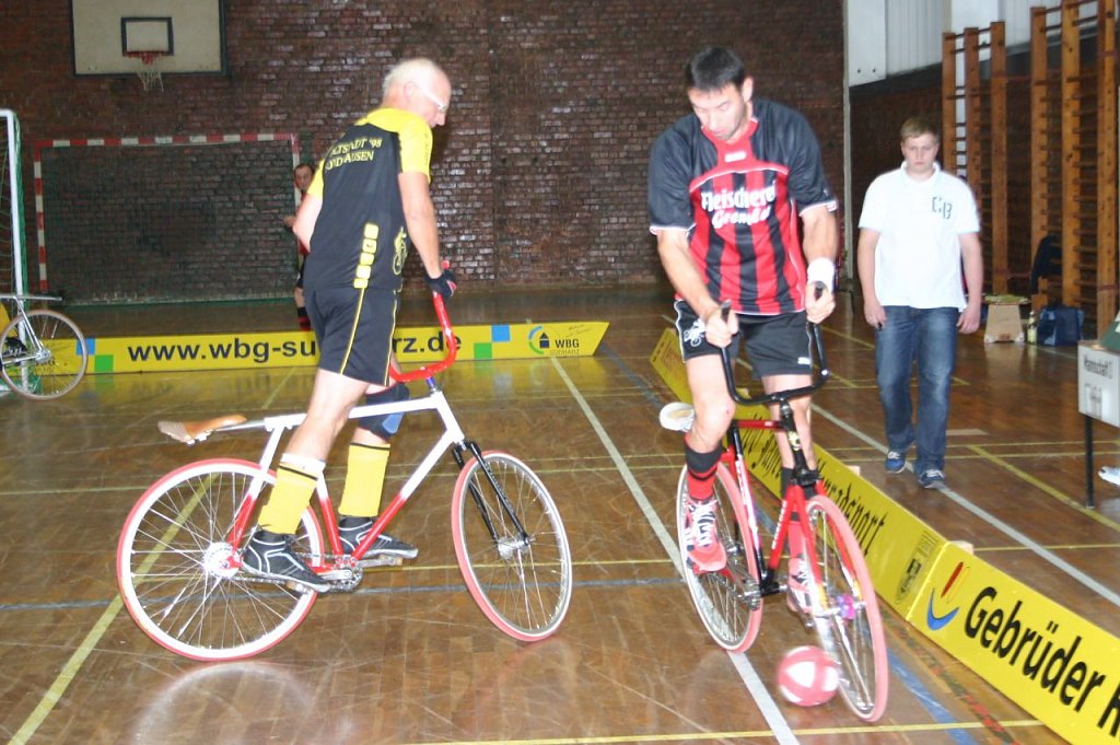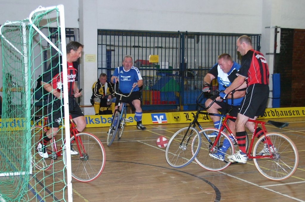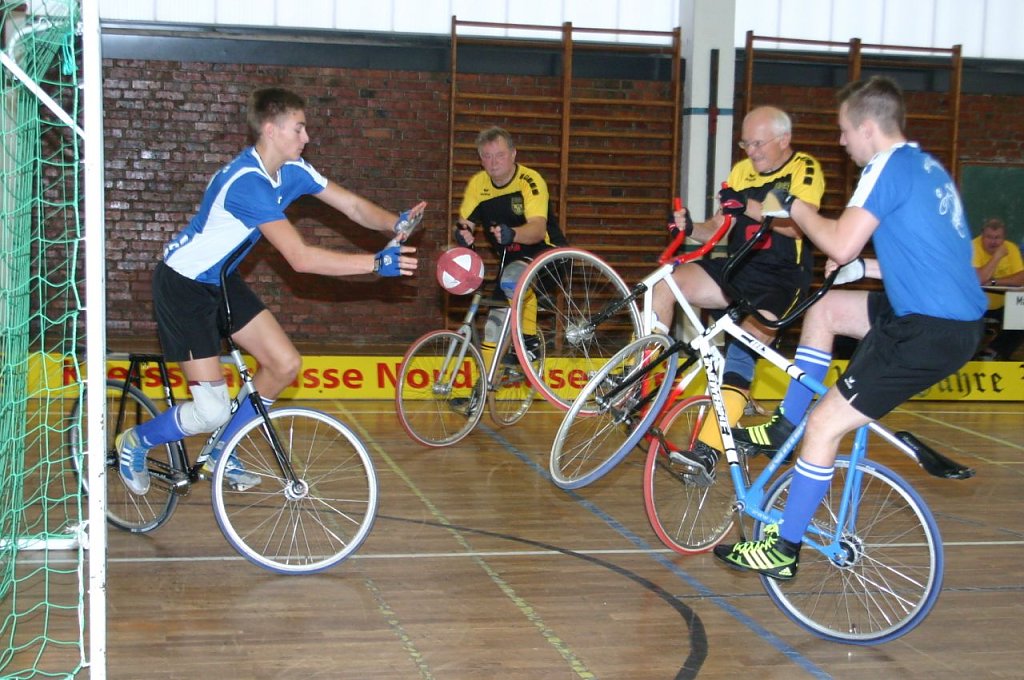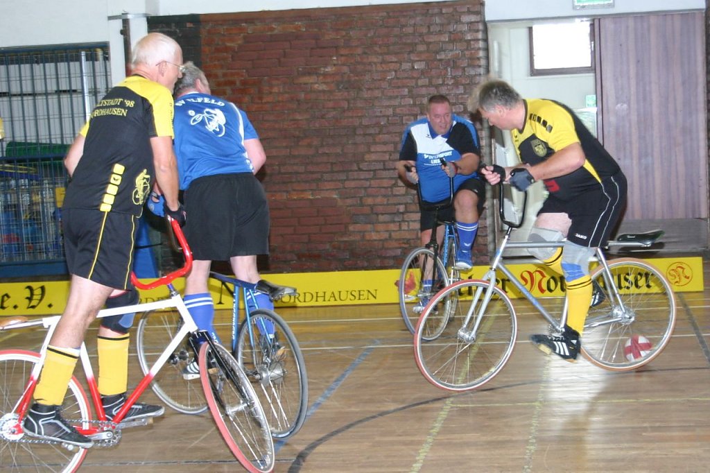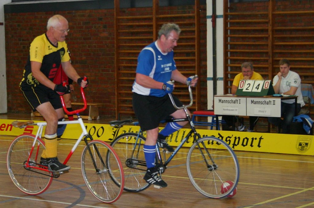 Wobei es am zweiten Spieltag am vergangenen Sonnabend in der Nordhäuser Frauenbergsporthalle einige durchaus bemerkenswerte und auch überraschende Ergebnisse gab. Dazu zählt die überraschende 2:3-Niederlage von Fiebig/Etzrodt gegen Gernrode I. Aber auch das couragierte Auftreten des wieder vereinten einstigen Erfolgsduos von Gastgeber Altstadt Nordhausen Bernd Aurin/Reinhard Schaade. Schaade hatte seine Radballschuhe ja eigentlich schon an den berühmten Nagel gehängt, holte sie nach dem Rücktritt von Marco Ahlert nun aber doch noch einmal herunter.