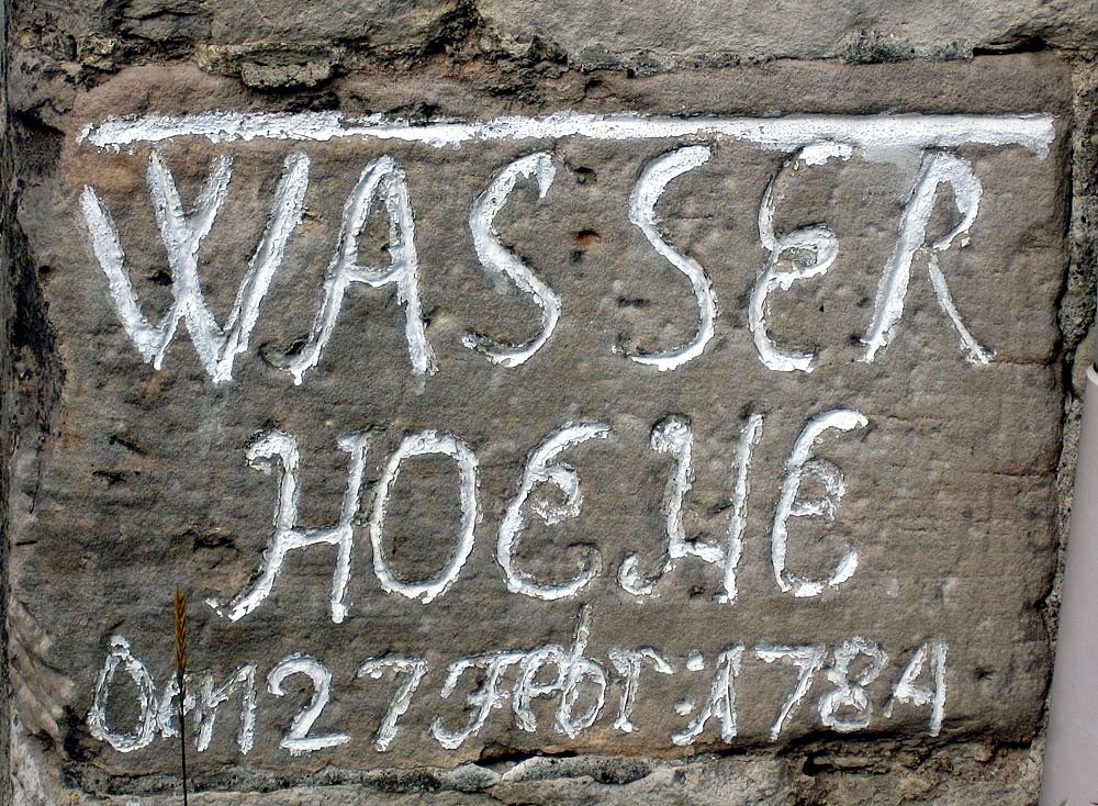 Hochwassermarke von 1784 am alten Schafstall in der Klostergasse in Oldisleben.