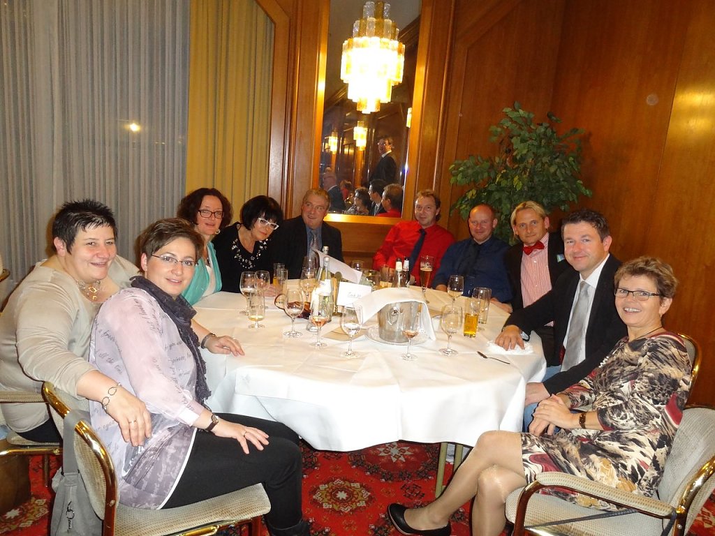 Zurück im Hotel nutzen viele Gäste die Gelegenheit zum Besuch des Schwimmbades. Die Köche hatten wieder ein köstliches Buffet vorbereitet, nach dem Essen war die Tanzfläche wieder schnell gefüllt. Als Höhepunkt des Abends wurde der dienstälteste Fahrer Thomas Erbsmehl für 25 Jahre bei Brauer Reisen geehrt. Dank seines Einsatzes konnte Jürgen Brauer seit Frühjahr 1990 Fahrgäste durch ganz Europa auf Reisen schicken.