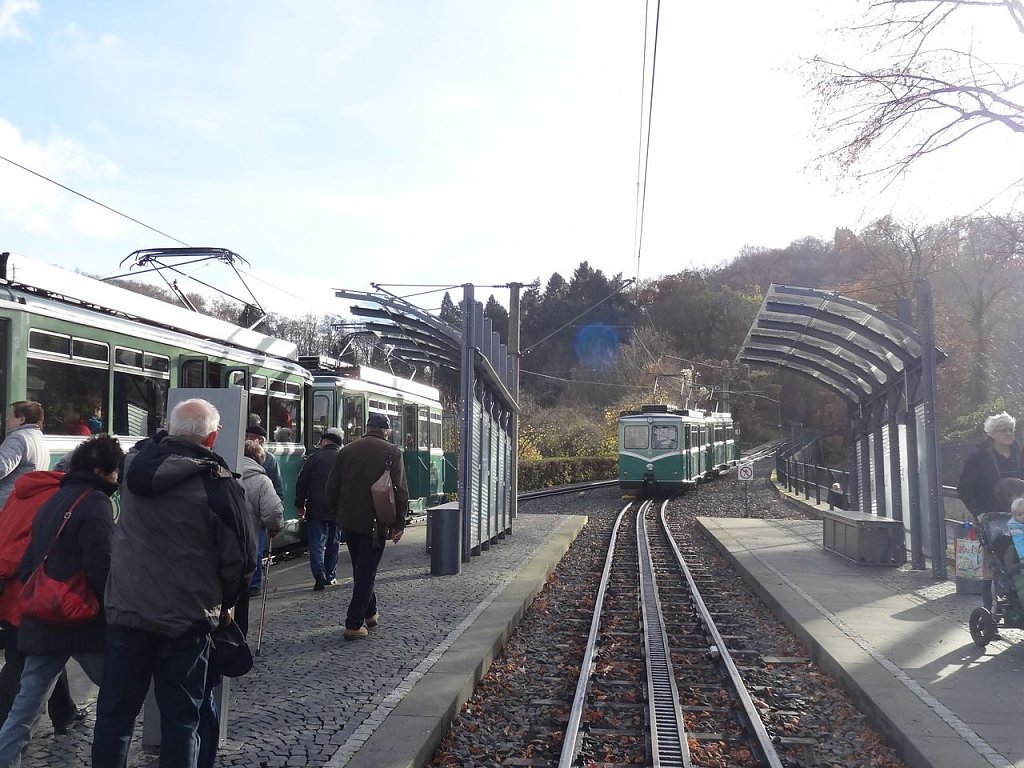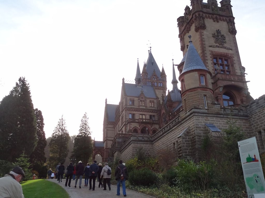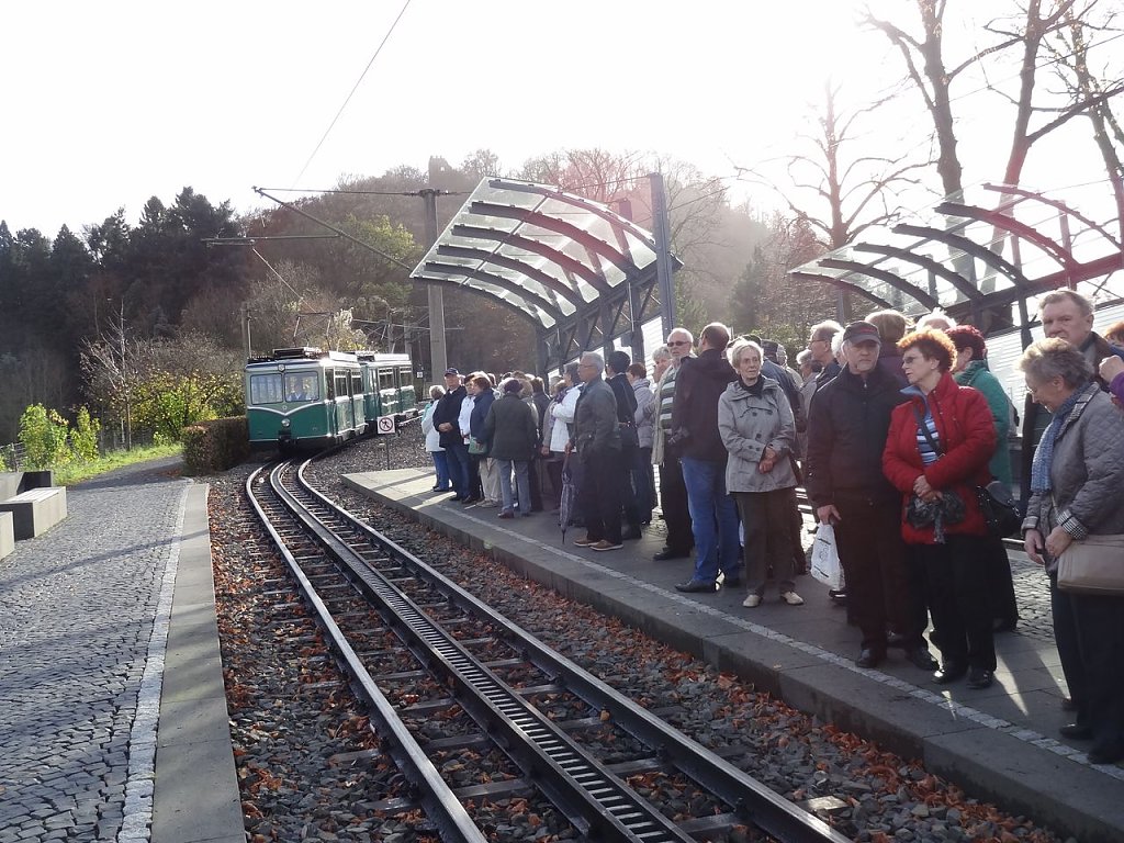 Direkt am Rhein beginnt das Siebengebirge, über Königswinter thront der imposante Drachenfels. Den steilen Berg kann man zum Glück bequem mit der Zahnradbahn erklimmen. Das Schloss Drachenburg hat jetzt im November eigentlich Ruhezeit, doch eigens für unsere Reisegruppe wurde gern geöffnet. Bei herrlichem Sonnenschein konnte Glühwein und Zwiebelkuchen und vor allem die herrliche Aussicht auf das Rheintal von der Terrasse aus genossen werden. Schnell ging die Zeit vorbei und mit vielen neuen Eindrücken kehrten die Fahrgäste in den Südharz zurück und freuen sich schon auf die nächste Reise.