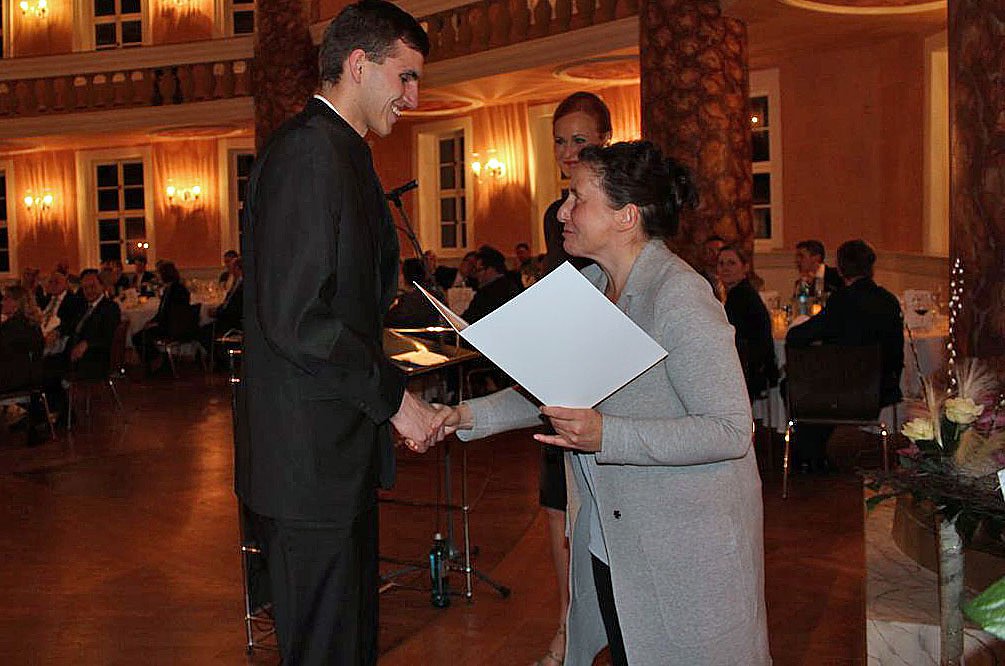 Thomas Weigl, Elektroniker für Betriebstechnik, vom Unternehmen Sokratherm, bedankte sich stellvertretend für alle Preisträger und betonte, dass eine gute Ausbildung Zukunftschancen für junge Menschen und Betriebe sichere. Wir stellten uns den Herausforderungen und gingen zusammen mit unseren Ausbildern, Lehrern, Mitschülern und der Familie diesen Weg, blickte er auf die Ausbildungszeit zurück und stellte fest, dass die Phase des Lernens nach diesem Lebensabschnitt noch nicht abgeschlossen sei: Wir sind gespannt, was uns in diesem Leben noch erwartet.
