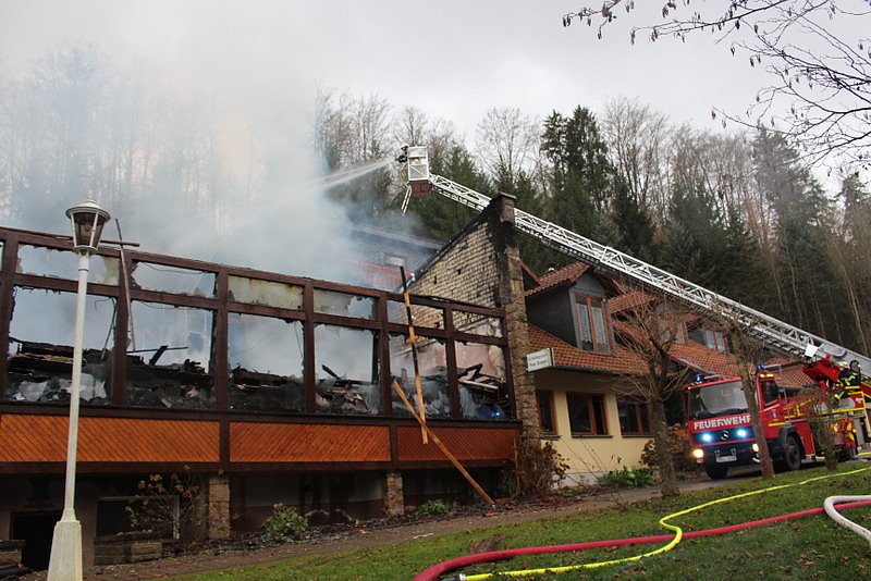 Vor Ort fand die Feuerwehr den Saal der Gaststätte in Vollbrand vor. Zum Glück befanden sich keine Menschen mehr darin. Jedoch mussten drei Anwohner, die bei Löschversuchen den Rauchgasen ausgesetzt waren, ins Krankenhaus gebracht werden. Einsatzleiter Heinz Anhalt ließ zunächst einen Wasserwerfer zum Schutz des benachbarten Gebäudeteils in Stellung bringen.