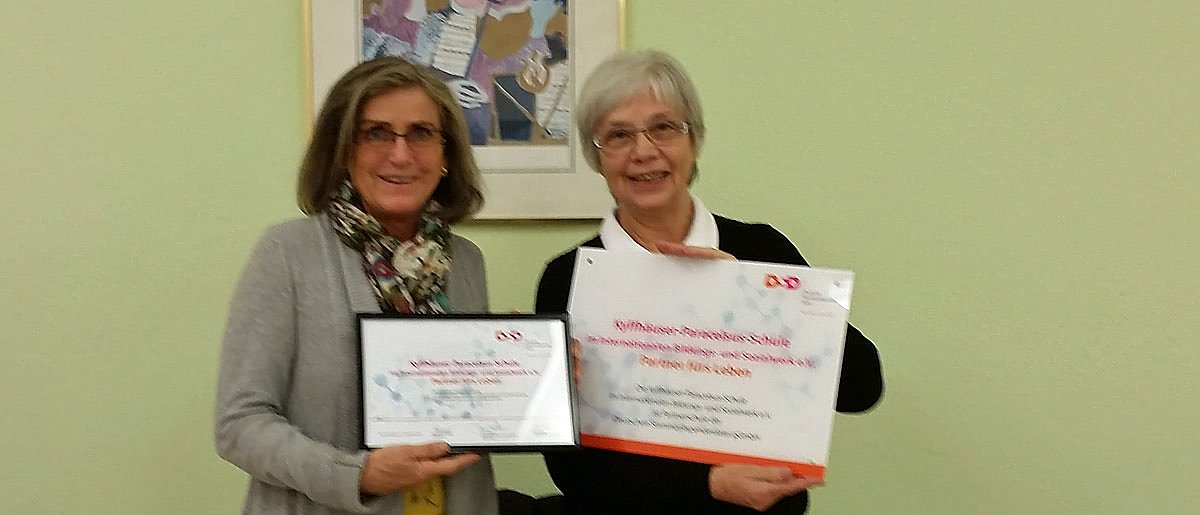 Die DSD hat mit unserer Schule eine Partnerschaft geschlossen. Die Partnerschaftsurkunde wurde gestern durch Frau Christina Fischer von der DSD Erfurt überreicht. Die Kyffhäuser-Paracelsus-Schule ist damit die erste Partnerschule der Deutschen Stammspenderdatei gGmbH in Thüringen.
