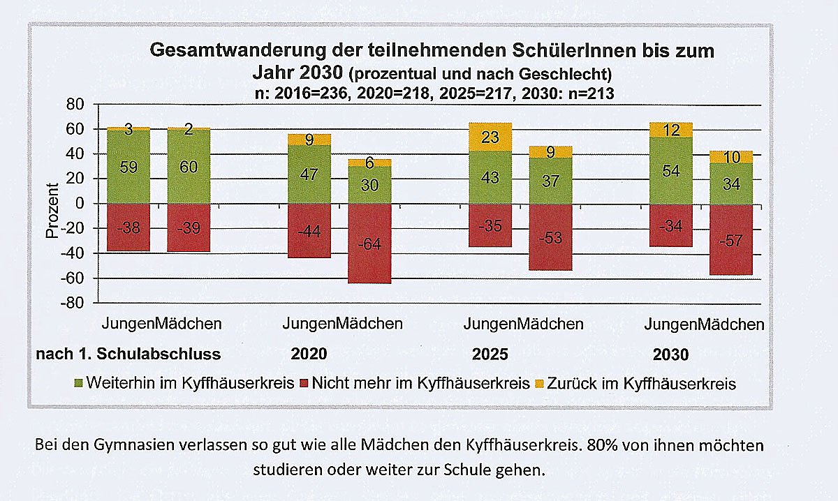 Bei allen Verbesserungen, die 360 Jugendlichen brachten zum Beispiel zum Ausdruck, dass 60 Prozent der Mädchen und 54 Prozent der Jungen später den Kyffhäuserkreis verlassen wollen. Das sollte den Politikern zu denken geben!