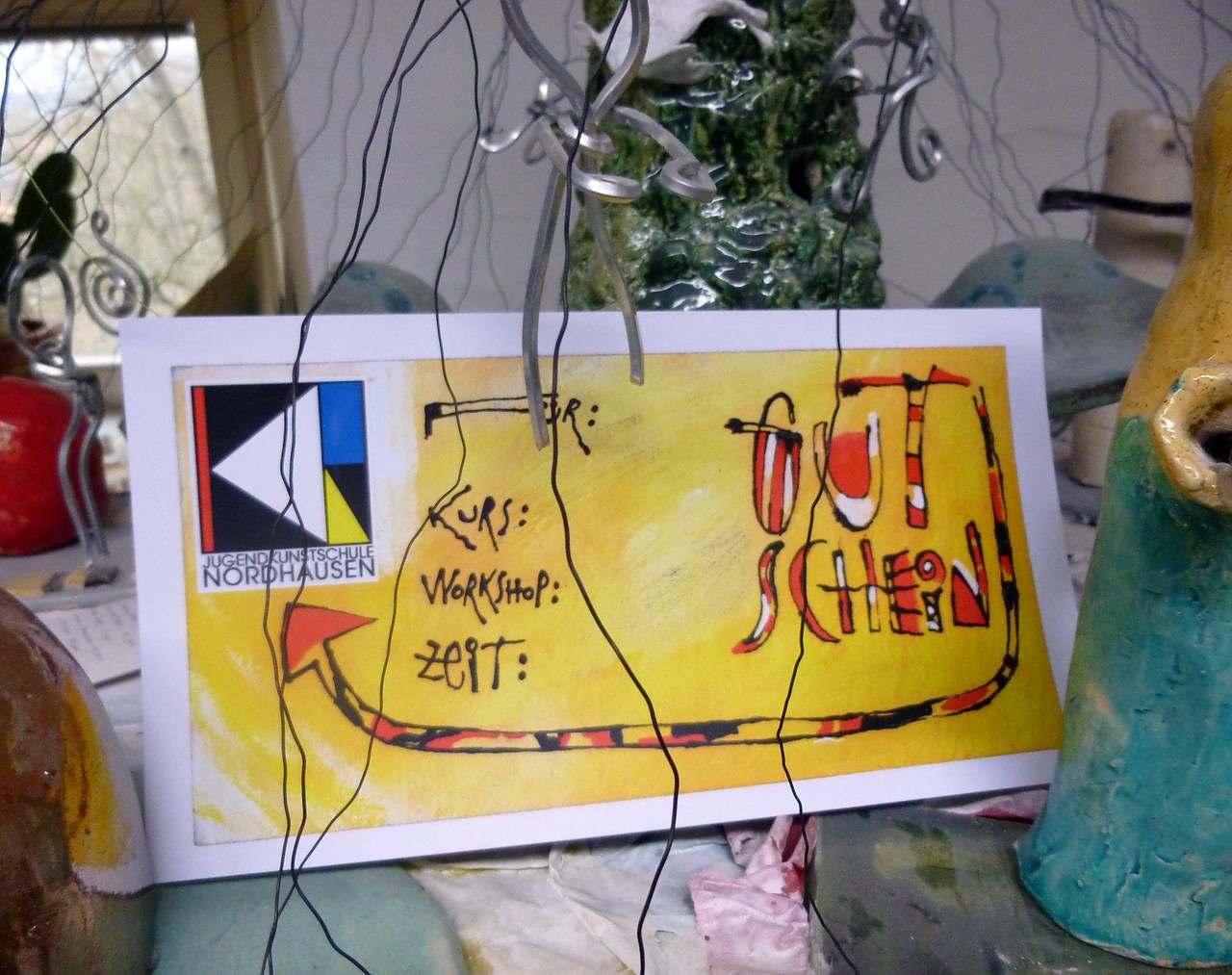 Ab sofort sind zu den Öffnungszeiten hier Gutscheine für Kreativ-Workshops oder Kurse, zum Beispiel zum Töpfern, Malen und Zeichnen oder Schmuckdesign erhältlich.