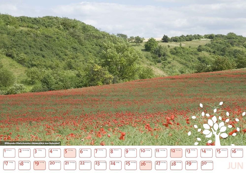 Der Kalender im DIN A3-Querformat ist zum Stückpreis von 10,-€ an mehreren Stellen in der Region erhältlich: in den Raiffeisenmärkten in Heldrungen, Wiehe und Kölleda, in der Tourist-Information sowie in der Post/Radgeschäft Pedalo in Wiehe. Verfügbarkeit der Kalender solange der Vorrat reicht.