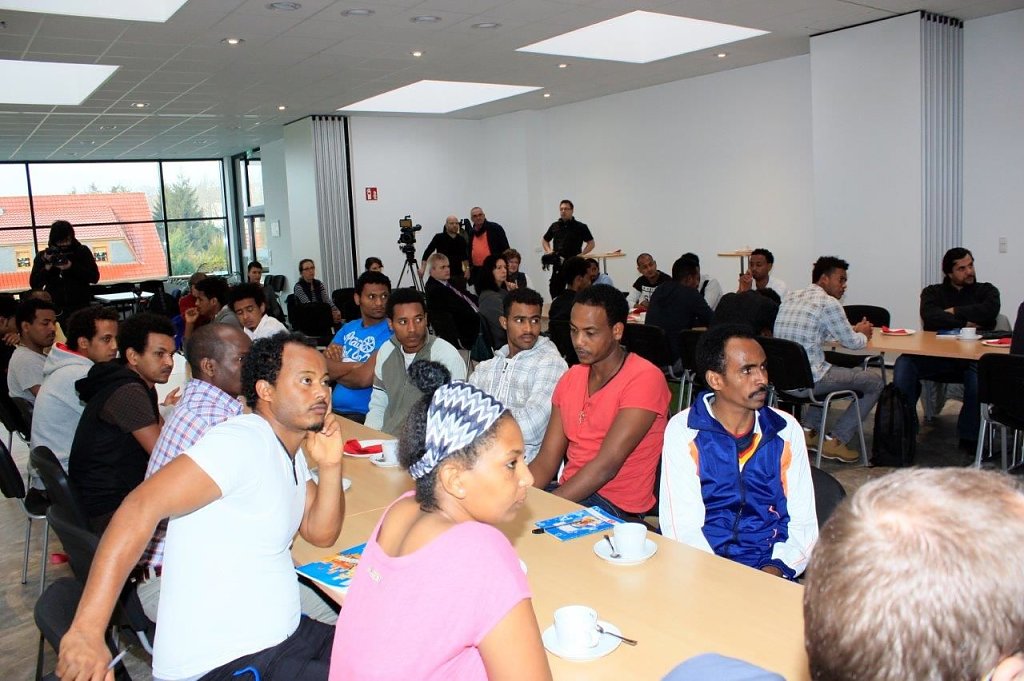 Wir möchten Ihnen die Chance auf eine Ausbildung geben, führte Peter in sein Vorhaben ein, das er in Zusammenarbeit mit Arbeitsagentur und Unternehmern der Region auf die Beine stellte. Anlass war der Ausspruch von Kanzleramtsminister Peter Altmayer Ende Oktober im Duderstädter Mercedes-Autohaus, dass alle nur redeten, aber niemand handle. Damals hatte ihm Helmut Peter zugerufen: Geben Sie mir 30 Flüchtlinge, und wir machen eine neue Peter-Klasse.