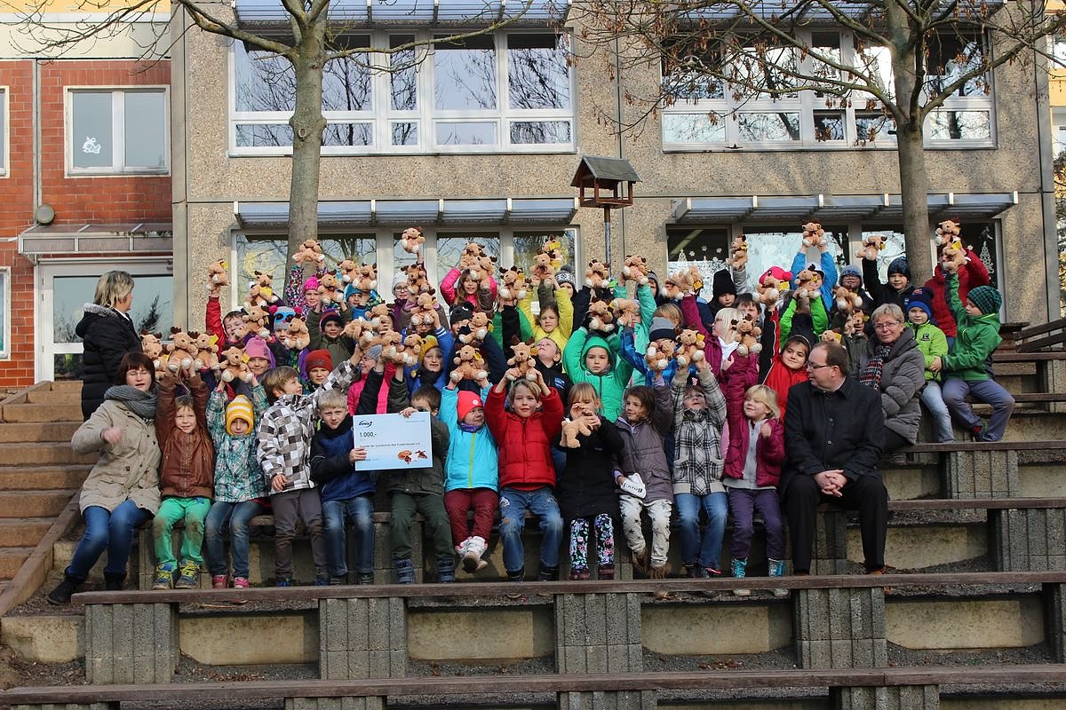 Und die Schülerinnen und Schüler freuten sich, neben einem Scheck für den Förderverein der Grundschule gab es für jeden ein Kuscheltier was hier zigfach in die Höhe gestreckte wurde. War etwa der Weihnachtsmann da? Nein, hier kn mit den Einzelheiten.