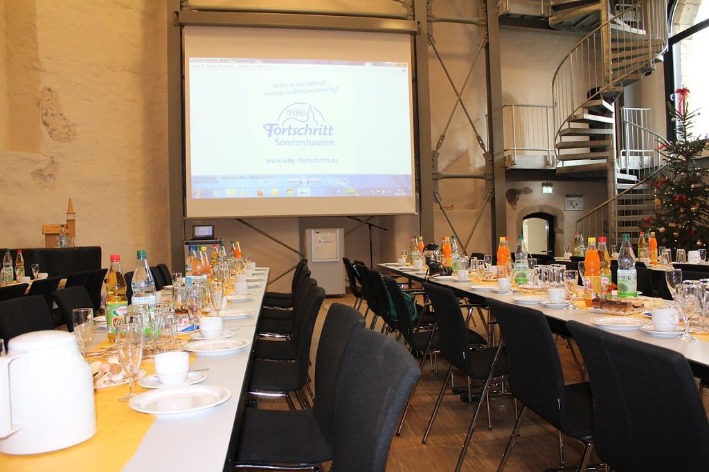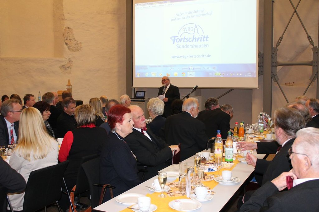 Sondershausens Bürgermeister Joachim Kreyer freute sich, dass im Saal die geballte Kompetenz der Sondershäuser Wohnungswirtschaft vertreten war, denn auch die Vertreter der Wippertal und der Glückauf waren zur Verabschiedung gekommen. Die Genossenschaft in dieser Zeit geführt zu haben bedarf Beifall so Kreyer und die Gäste im Bürgersaal der Cruciskirche sahen das ebenso.