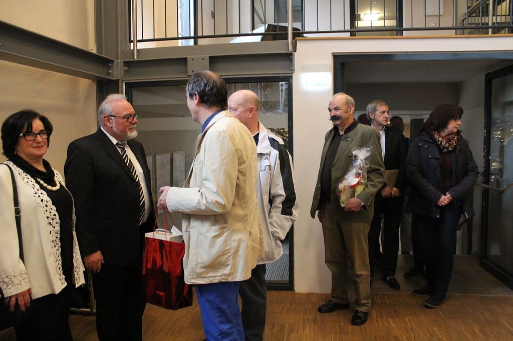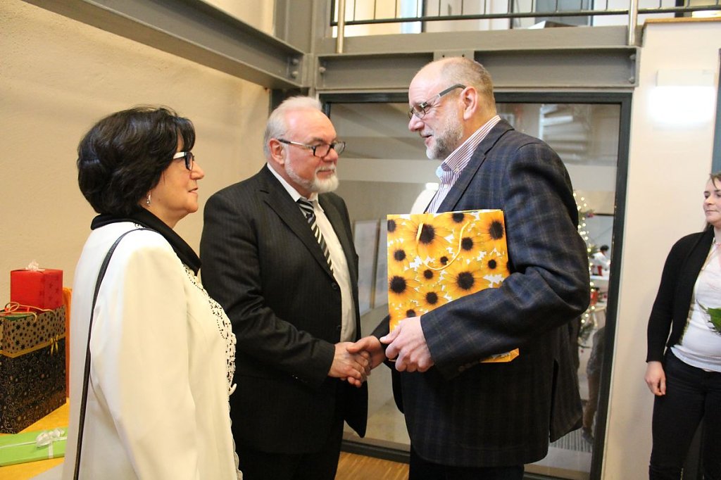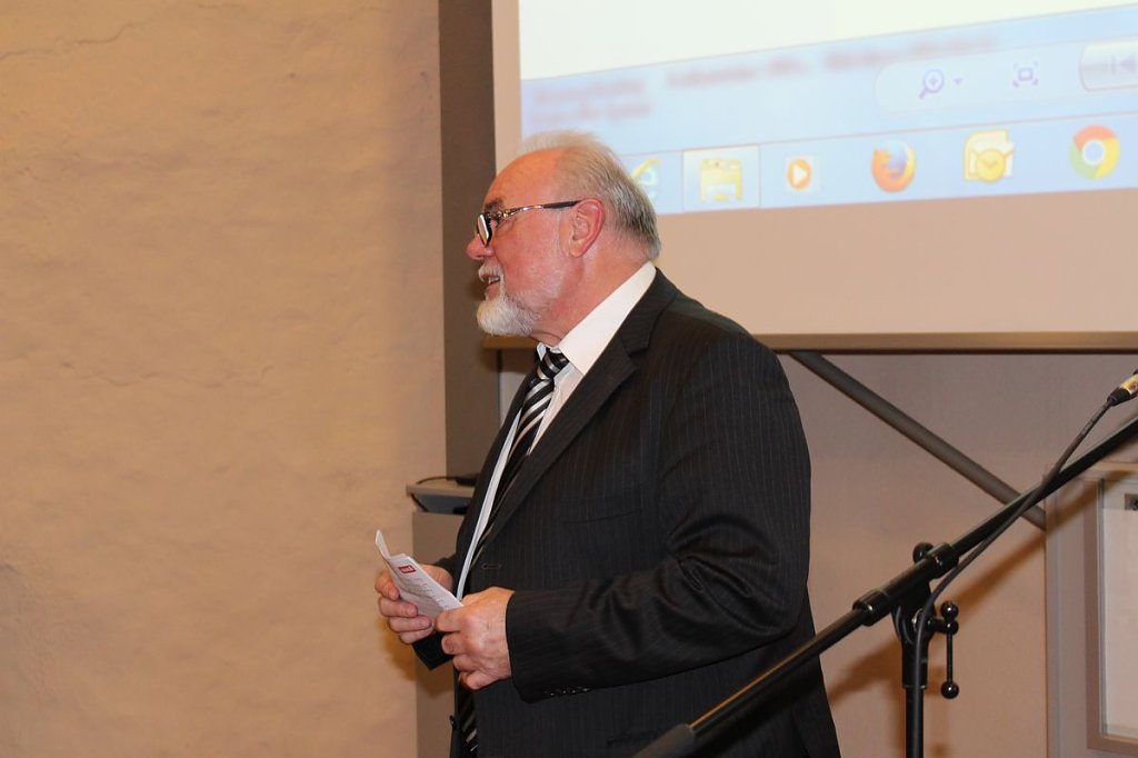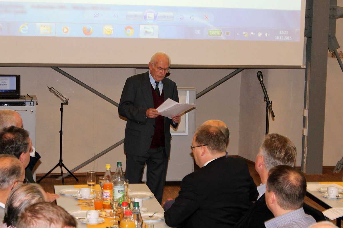 Lange Reden wurden nicht geschwungen, aber der Vorsitzende des Aufsichtsrates, Heinz Röll, macht einen Rückblick auf den beruflichen Werdegang von Horst Mähler, von der Ausbildung bis hin zum (Un)Ruhestand als Rentner den er nun bald am 31.12.2015 erreicht.