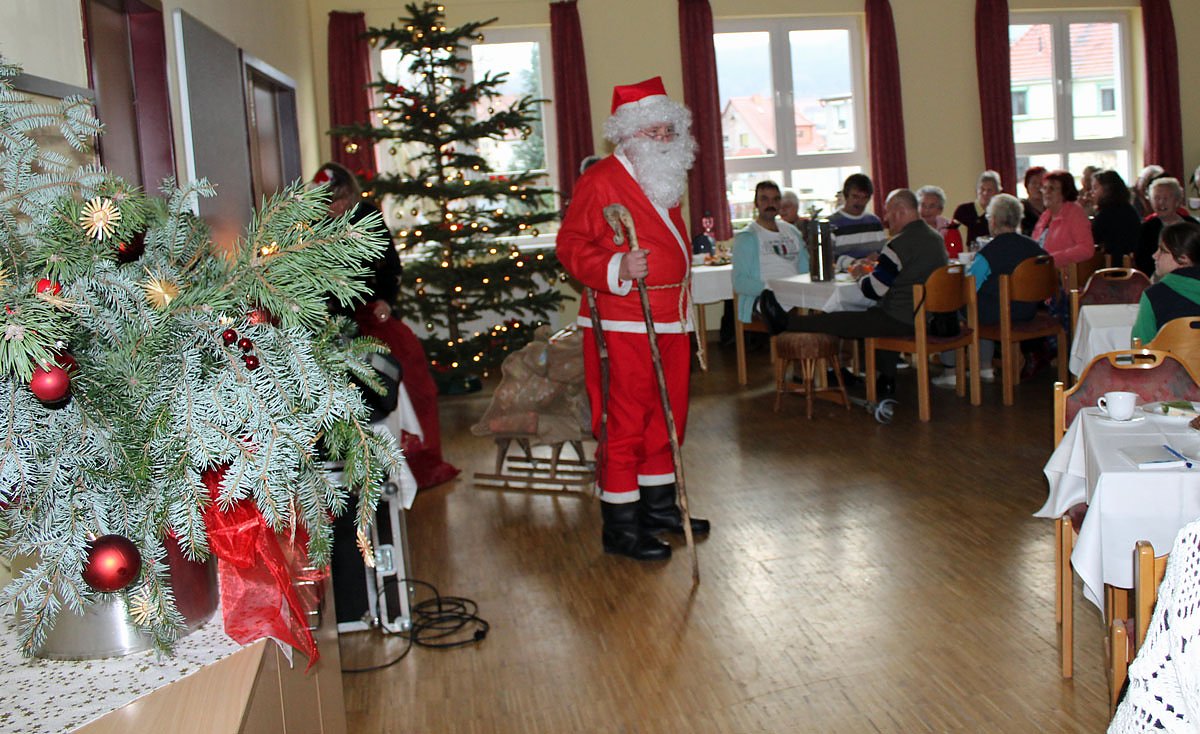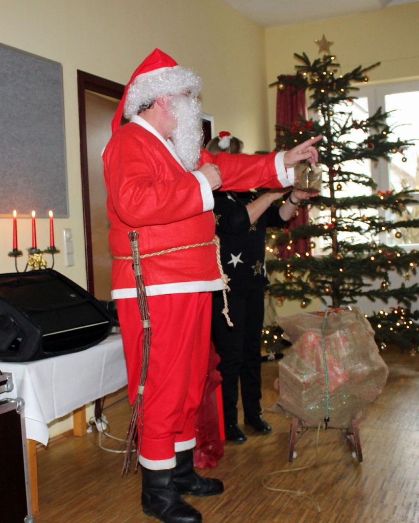 Die Hausleiterin des HOC, Gudrun Arnold, hatte die Weihnachtsgäste begrüßt und half als Wichtel bei der Verteilung der Weihnachtsgeschenke mit.