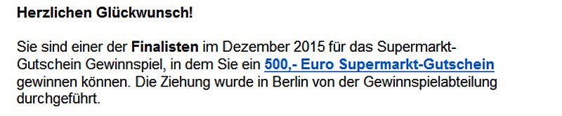 Selbst wenn Sie einen Gutschein abgebildet sehen sollten, Sie fangen sich nur einen Virus ein, der voraussichtlich Daten Ihres Rechners klaut. Wo Sie auf keinen Fall landen, ist bei Netto und Geld sehen Sie nicht. Und lassen Sie sich nicht täuschen, wenn Sie sogar mit richtigen Namen angesprochen werden.