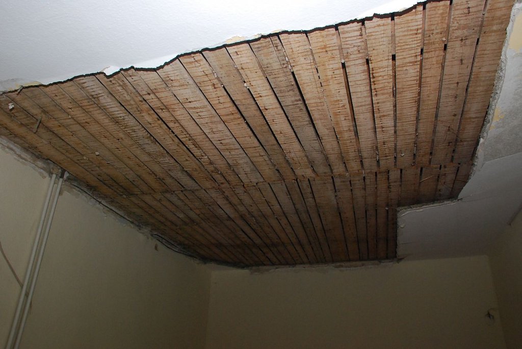 Nicht alles kam nach unten. Was noch an der Decke hängt, wird entfernt. (Foto: Jochen Miche)