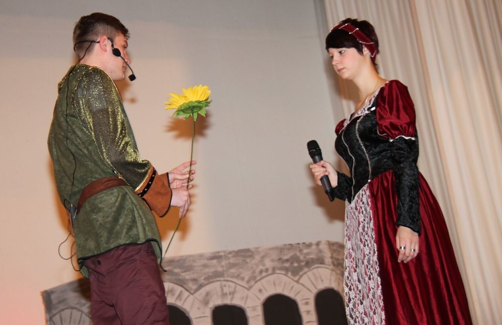 Rund 20 Schüler hatten sich aufwändig kostümiert und brachten die wohl bekannteste Liebesgeschichte aller Zeiten auf die Bühne. Seit Anfang des Schuljahres hatten die Schüler das Stück einstudiert, Kulissen gebaut und Requisiten zusammengestellt. Heute ernteten sie dafür im Saal des Kulturhauses viel Applaus.