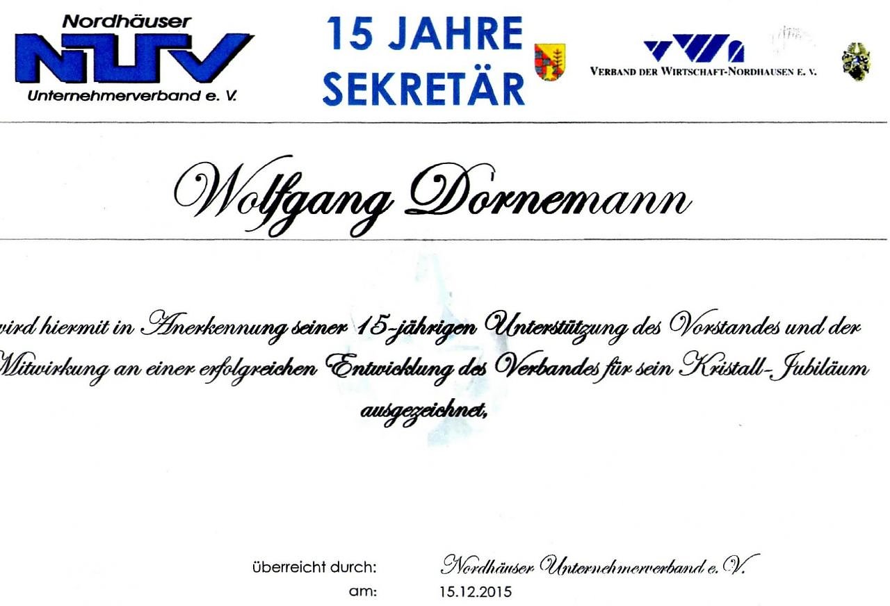 Im Januar 2001 begann seine Tätigkeit als Sekretär beim Verband der Wirtschaft Nordhausen (VWN). Ein Jahr später lernte der Autor dieses Beitrages Wolfgang Dornemann kennen...