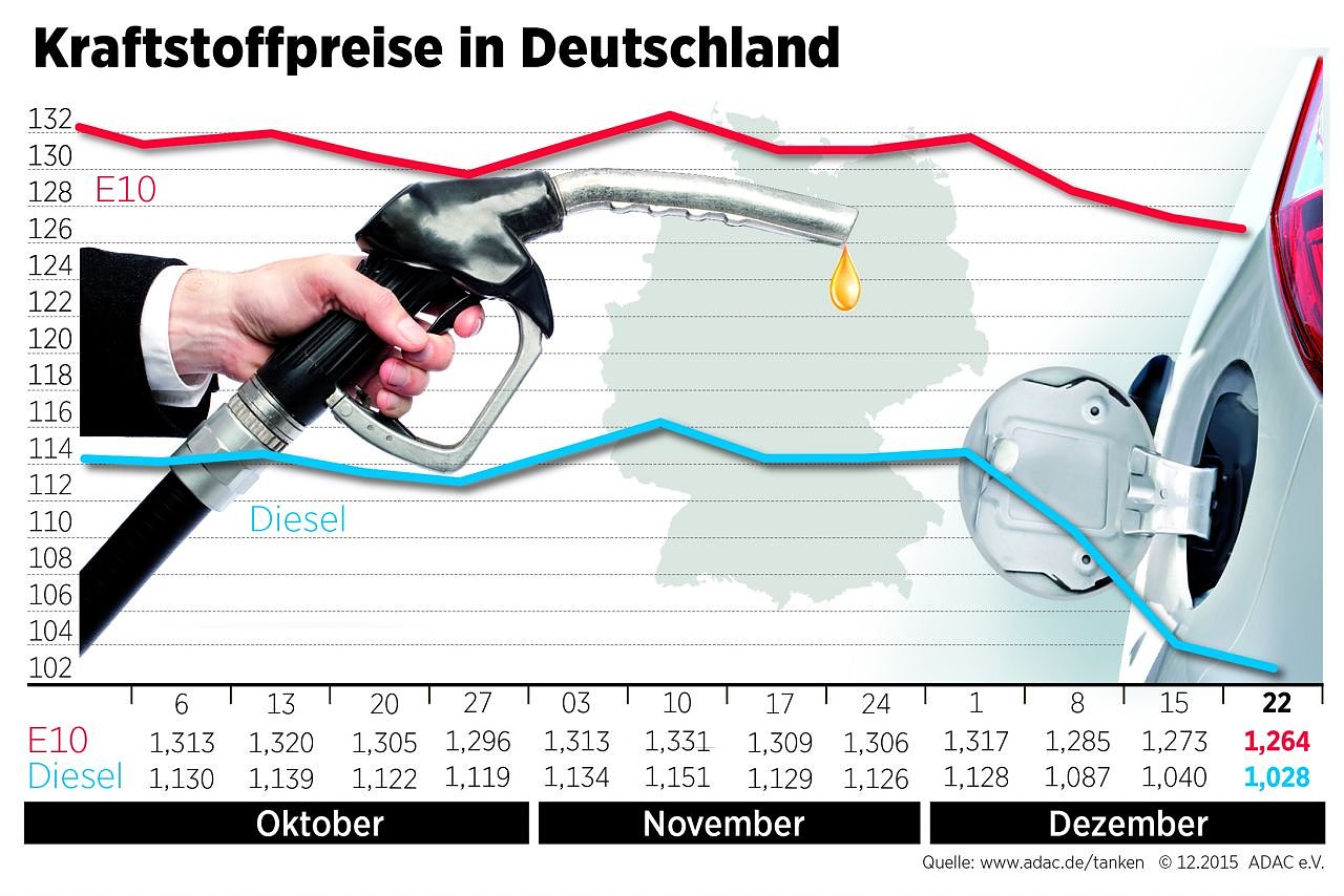 Start der Winterreisewelle dürfen sich Urlauber über weiter fallende Kraftstoffpreise freuen. Ein Liter Diesel kostet laut der aktuellen ADAC-Auswertung 1,028 Euro – das ist 1,2 Cent weniger als in der Vorwoche. Damit ist der Dieselpreis auf einem neuen Jahrestiefstand angekommen...