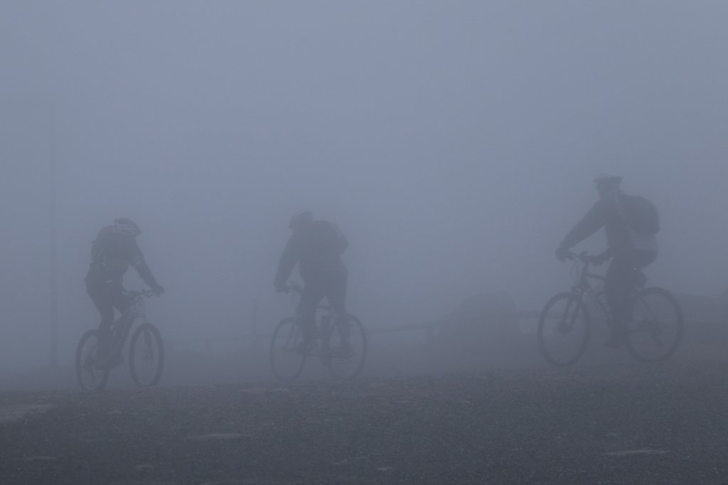 Das Wetter war nicht wirklich toll, aber wenigstens regnete es nicht. An Schnee glaubte ohnehin niemand wirklich. Oben auf dem Gipfel blies ein ordentlicher Wind und die Sicht lag bei unter 20 Metern. Dabeisein war hier alles.