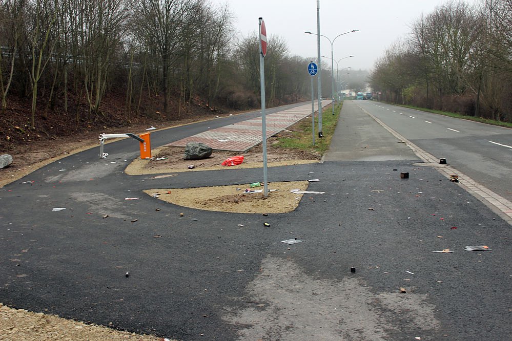 Ob es die Gleichen waren, die am Fußgängertunnel an der Panzerstraße eine große Silvestersause mit viel Feuerwerk veranstaltet haben ist nicht bekannt. Zumindest haben sie sie den Ort verlassen, ohne ihren Dreck zu beseitigen.