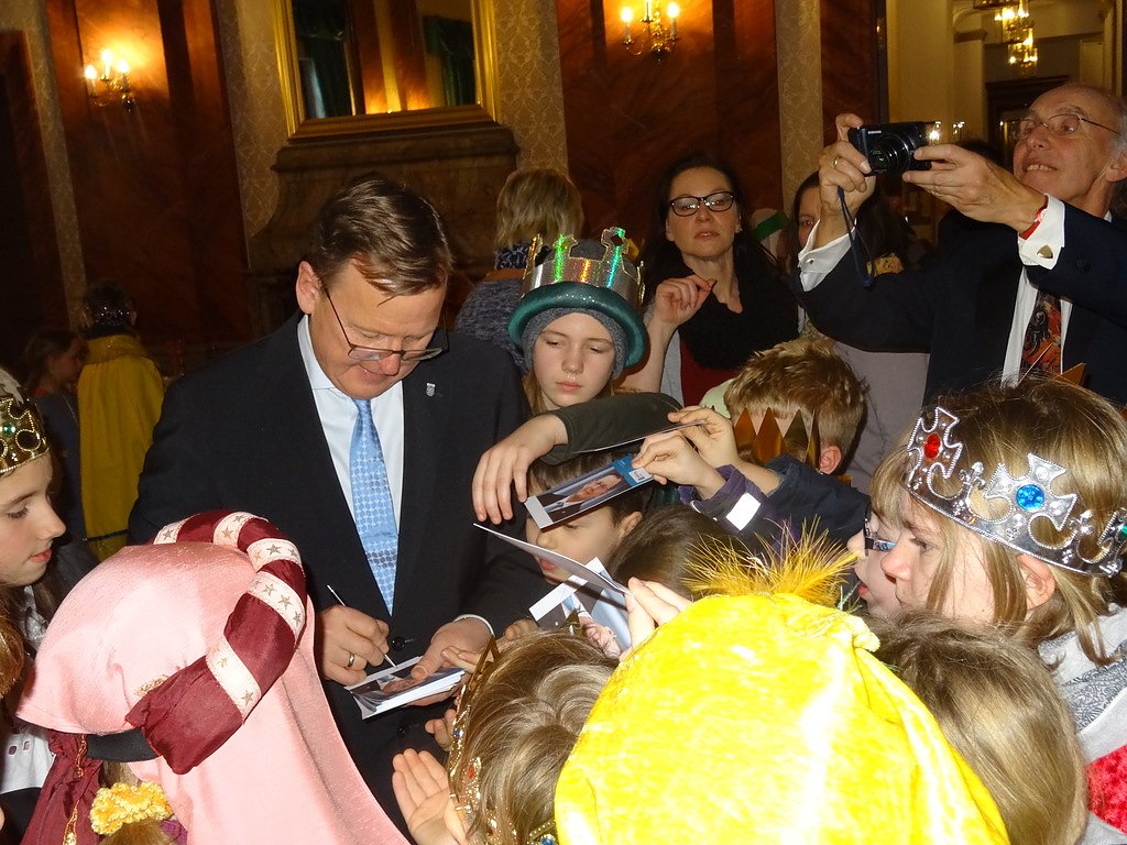 Danach waren alle eingeladen in den Barocksaal, wo die Thüringer Stollenkönigin und das Bäckerteam mit einer süßen Überraschung auf die Sternsinger warteten. Die Kinder ließen es sich schmecken. Ministerpräsident Ramelow gab zum Abschluss sehr gern noch Autogramm den Kindern, die ihn dicht umringten.
