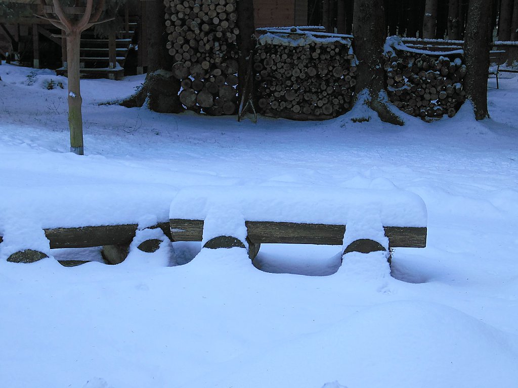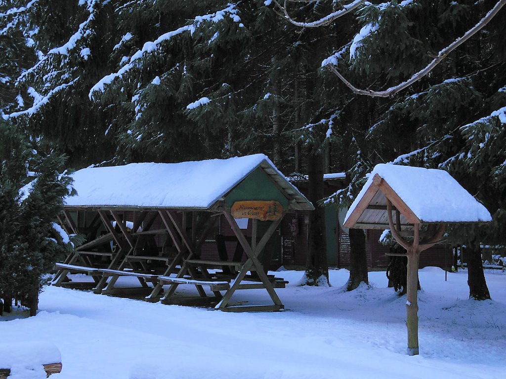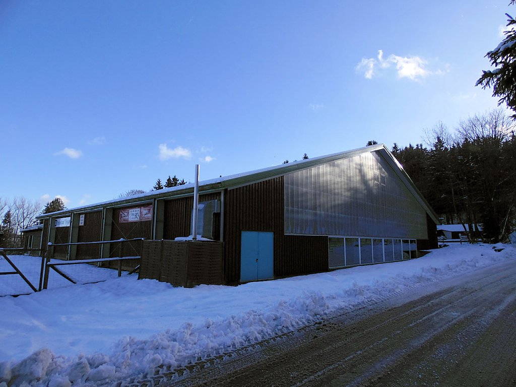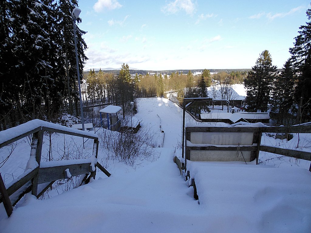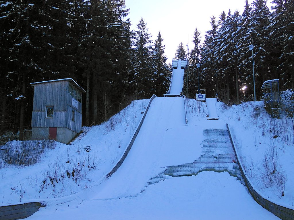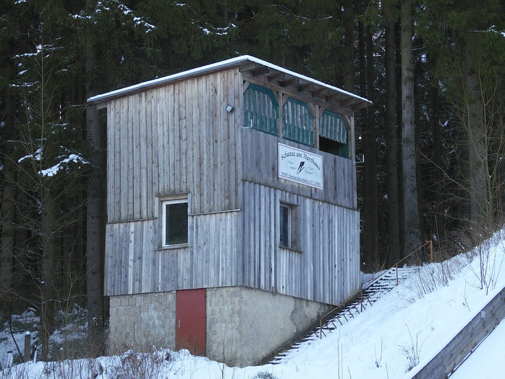 Ein Katzensprung von dieser Schneise ist auch gleich die Sprungschanze von Benneckenstein. Ein zwei mal hatte ich früher schon versucht dort ein Springen zu beobachten, aber das ungünstige Wetter hatte jedesmal zu einer Absage geführt.