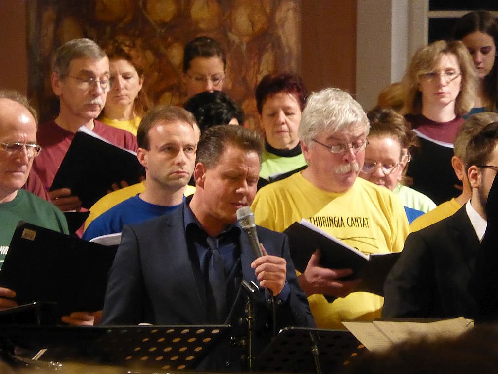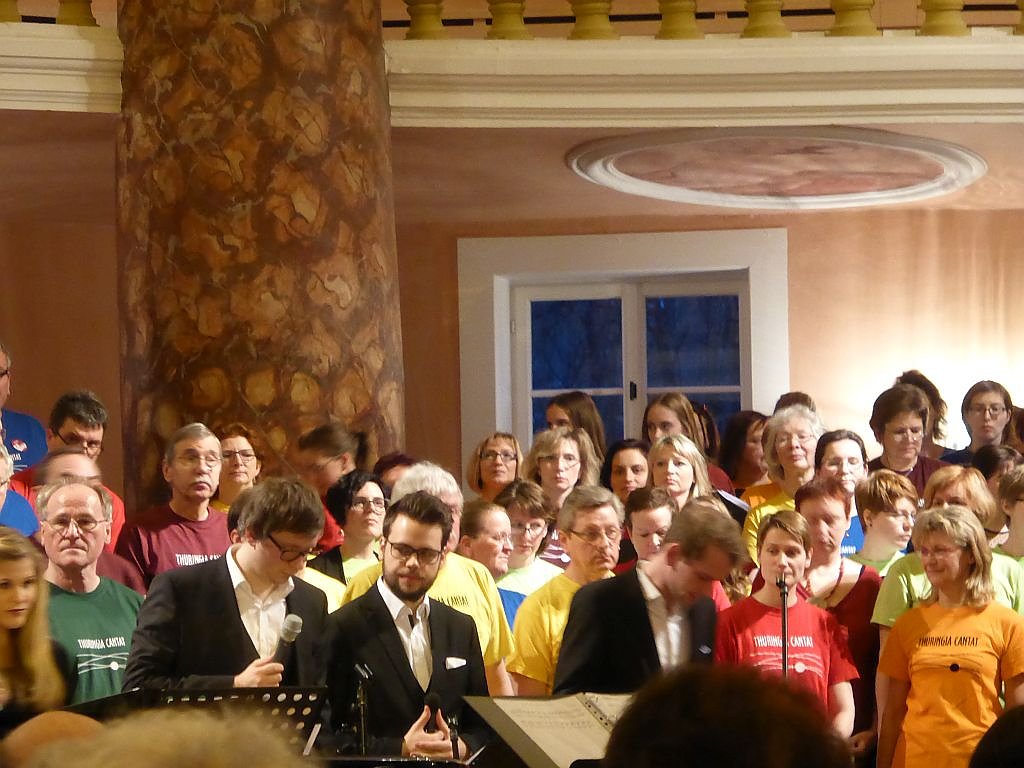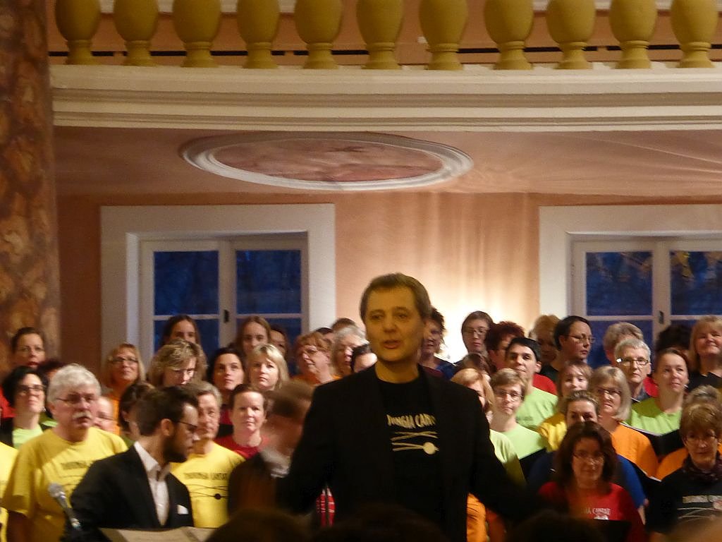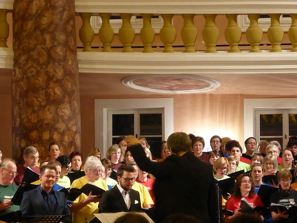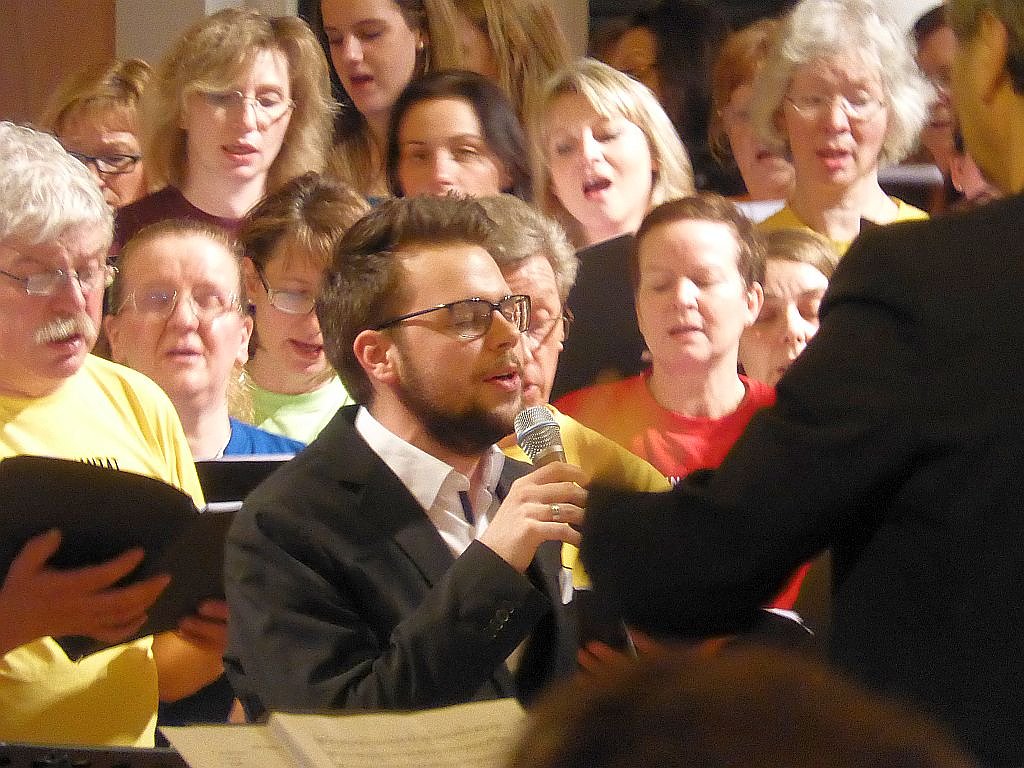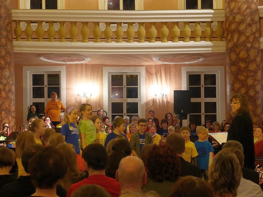 Mit Klatschen begrüßte das Publikum die Teilnehmer des zweitägigen Chorlagers an der Landesmusikakademie unter der Leitung von Bundeschorleiter Prof. Andre Schmidt. Musicalmelodien aus "Tarzan", "König der Löwen","Starlight-Express" und andere brachten sie stimmgewaltig zu Gehör.