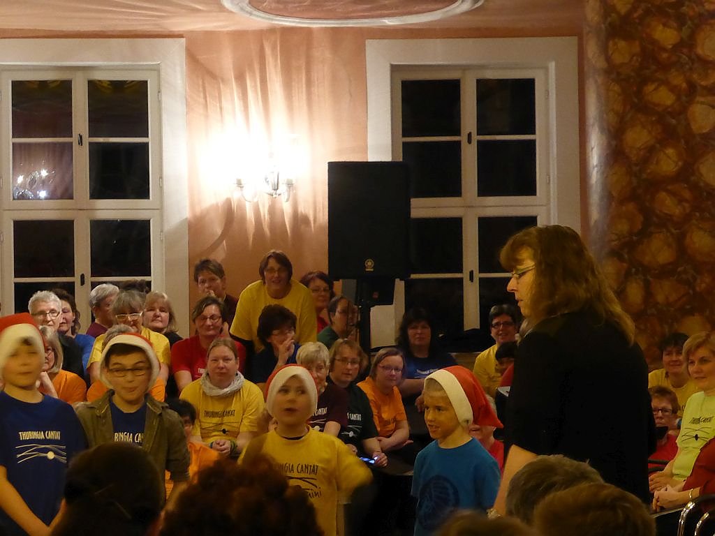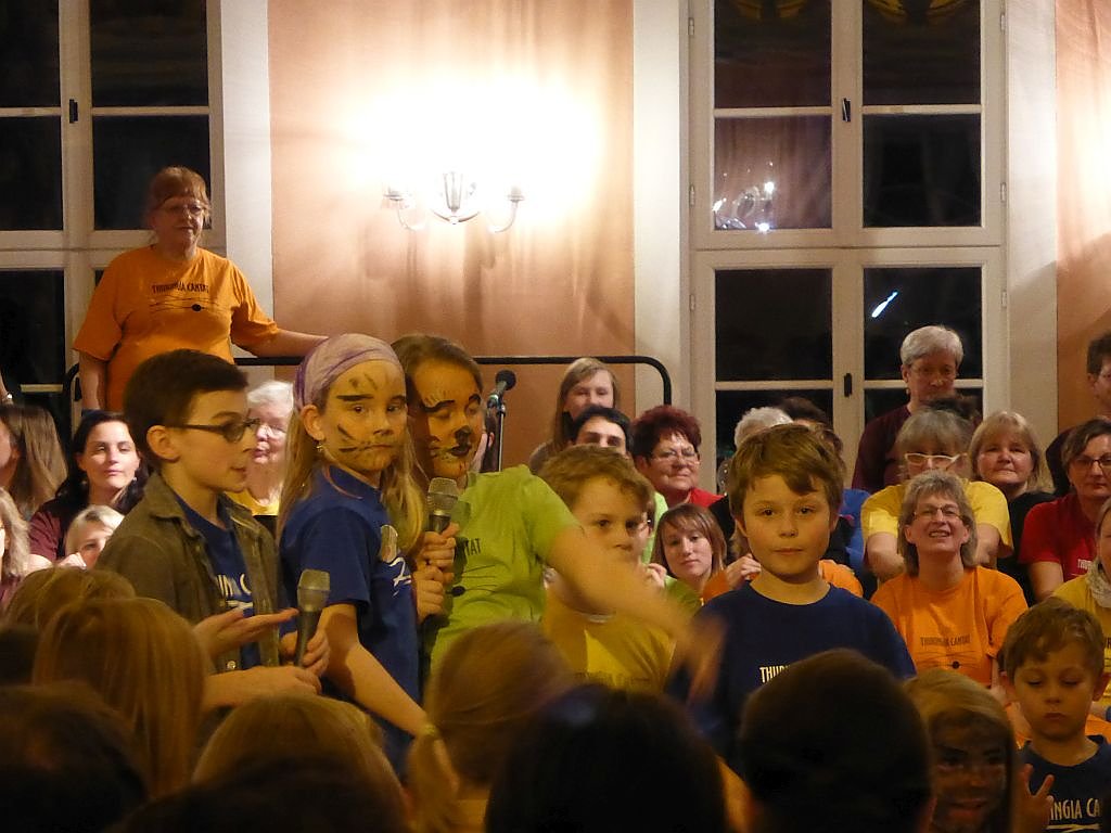 Mittendrin auch die "Bambinis",Kinder die mit:" Hei ho, hei ho ",als kleine Weihnachtsmänner alle begeisterten.Sie blieben auch verwandlungsfähig als sie das Dschungelbuch mit Mogli und die Bremer Stadtmusikanten musikalisch gestalteten. Nach dem begeisterten Applaus für die Kleinen gab es weitere Melodienfolgen aus verschiedenen Musicals.Prof. Andre Schmidt dankte allen die an der Vorbereitung und Durchführung mitgewirkt hatten bevor sich der Chor mit"Somewhere Over the Rainbow" verabschiedete.