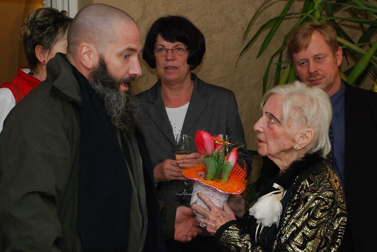 Miniaturschnitzer Lothar Lauterbach, der 1947 bei Frau Weser das Tanzen erlernt hatte, war ebenfalls unter den Gästen. Er überreichte Blumen, die ein bisschen klein geraten sind, aber dafür kein Wasser brauchen, wie er schmunzelnd erklärte. Daraufhin überreichte er einen bezaubernden, in einer Nussschale steckenden geschnitzten Miniaturblumenstrauß.