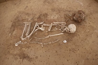 Artern, Kyffhäuserhütte, schnurkeramisches Frauengrab mit Zahn- und Muschelschmuck (Foto: TLDA, Weimar)