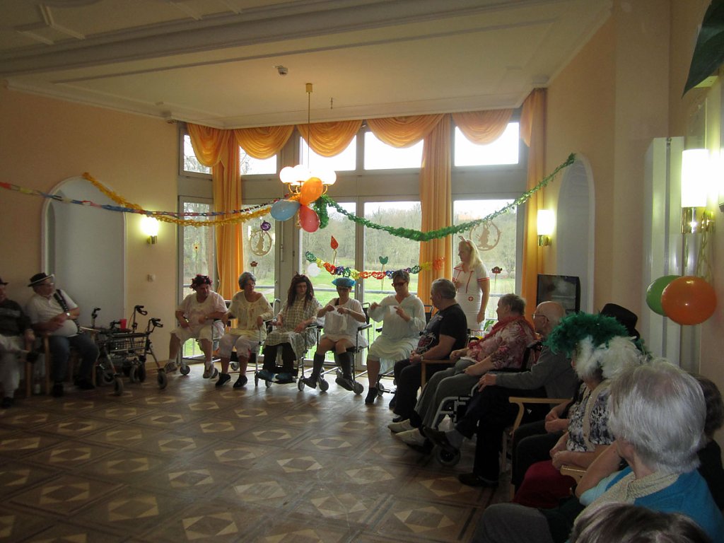 Der Höhepunkt für alle war der Sketch Sparmaßnahmen im Altenheim. Viele Bewohner hielt es kaum noch auf den Stühlen und so wurde anschließend bei Stimmungsmusik und Bowle das Tanzbein geschwungen.