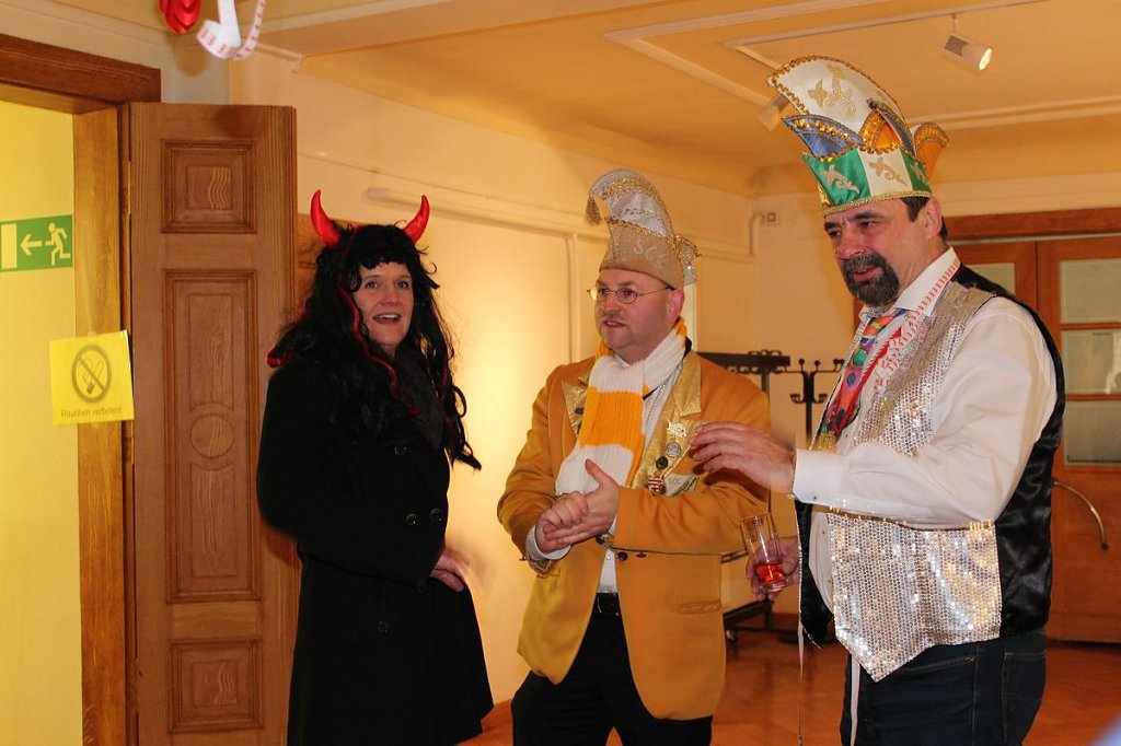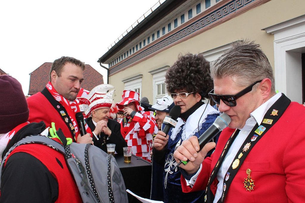 Schon seit 09:30 Uhr wurde auf dem Markt so richtig gefeiert und mancher nahm den Mund ganz schön voll. Aber auch beim Empfang der Tollitäten im Rathaus war die Stimmung prächtig....