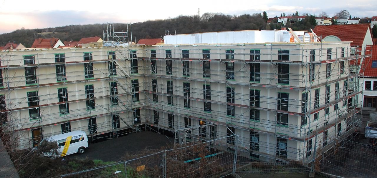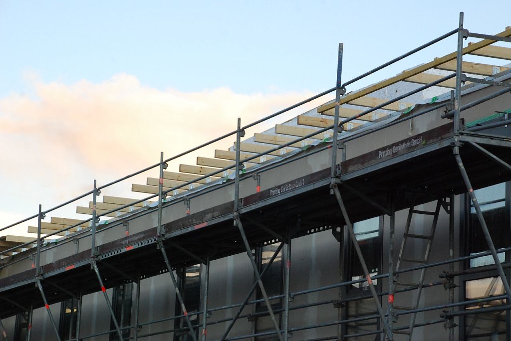 Das künftige Jobcenter in Hettstedt erhält eine wärmende Mütze: Styropordämmung zum Isolieren und eine Folienbespannung zum Abdichten. (Foto: Jochen Miche)