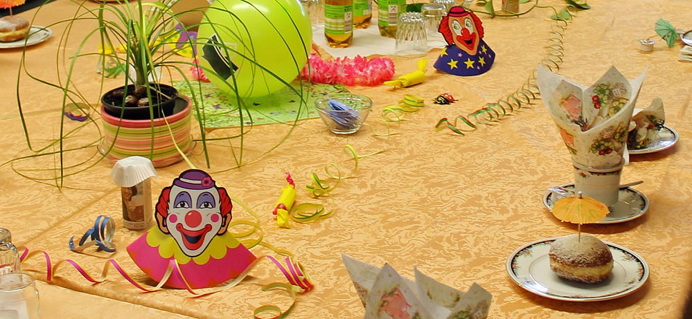 Das mittwöchige Treffen stand ganz im Zeichen des Faschings. Bei einer Tasse Kaffee und dem obligatorischen Pfannkuchen amüsierte man sich köstlich. Bemerkenswert wie jedes mal, wenn im Verband gefeiert wird, die passende Tischdekoration.