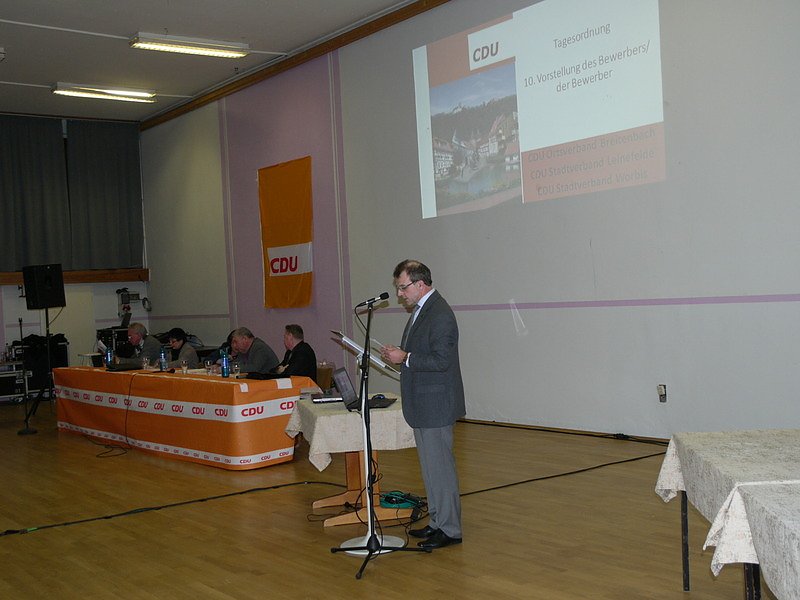 Der Saal im Haus des Handwerks war überaus gut gefüllt, fast wie beim Karneval, scherzte der Noch-Bürgermeister Gerd Reinhardt am Pressetisch. Über 100 CDU Mitglieder waren gekommen, 102 waren davon wahlberechtigt. Die Sitzung begann pünktlich 18.30 Uhr, kurz nach 20 Uhr stand das Ergebnis fest.