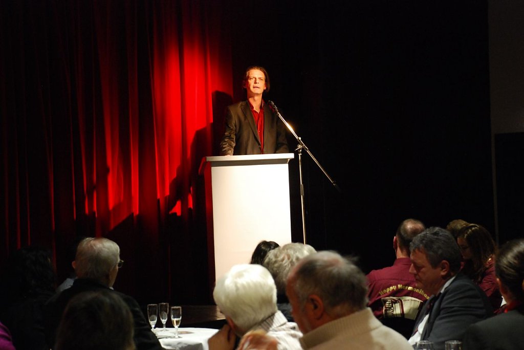 Für Unterhaltung sorgte punktuell auch Stefan Gebhardt, zum Beispiel mit der Anspielung, die Abwasserverbände würden sich die Anschlussgebühren am liebsten bis zurück in die Kaiserzeit bezahlen lassen. Applaus erhielt er zudem für seine Forderung, das jetzige Kulturwerk müsse sich wieder als Theater bezeichnen dürfen und personell entsprechend ausgestattet sein. Immerhin sei es gelungen, dank massiver Proteste aus der Region die Schließung des Spielortes zu verhindern. –