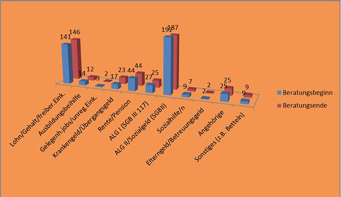 Hauptlebensunterhalt aller Klientinnen und Klienten in 2015 zu Beginn und am Ende der Beratung, Begleitung und Behandlung (Foto: Diakonie in Nordhausen / Stiftung Maria im Elende GmbH)