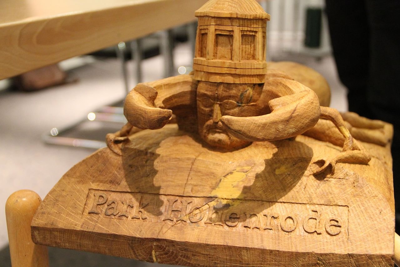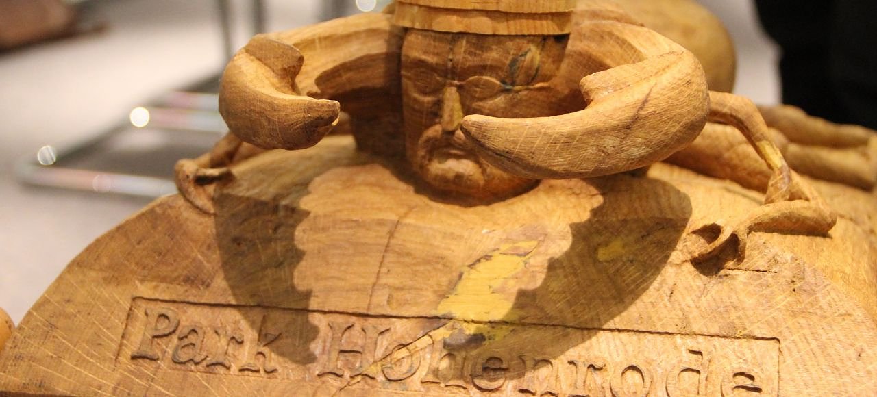 Und noch etwas hat das "Bürgerprojekt", wie Frau Hartmann die Gesamtaufgabe Hohenrode gerne nennt - die Hauptreppe zum Park konnte 2014 erneuert werden. Dabei gab es, als man einmal angefangen hatte, mehr Arbeit als zunächst gedacht. Wie es sich für eine Nordhäuser Treppe gehört wird auch der Aufgang zu Park und Villa im Laufe des Jahres einen eigenen Treppenkäfer, den "Parkwächter" erhalten. Das Holzmodell des neuesten Treppenkäfers konnte man gestern schon bewundern.