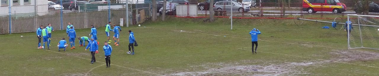 Die Mannschaften machen sich auf dem Übungsplatz war. Man beachte die Beschaffenheit. Das ist einer Regionalliga einfach unwürdig.