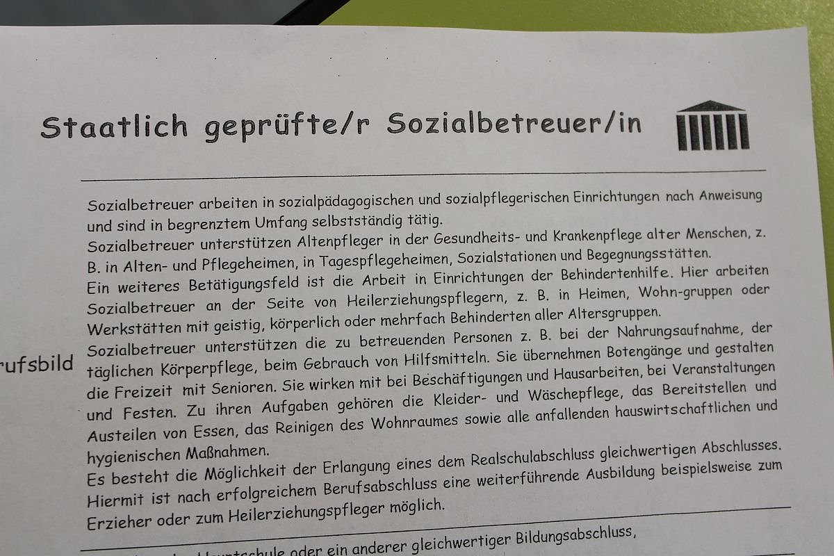 - Staatlich geprüfte/r Sozialbetreuer/in – Ausbildungsdauer 2 Jahre