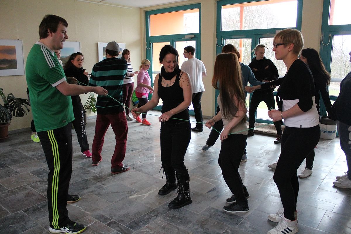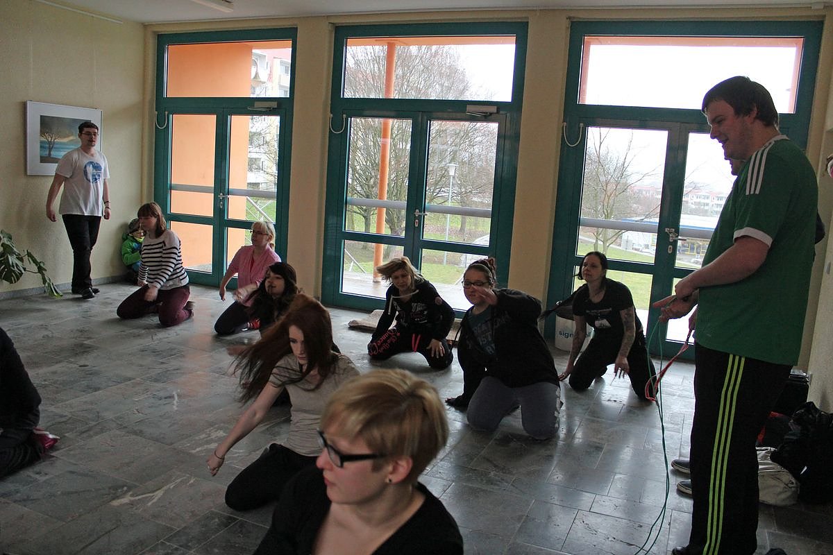 Aber nicht nur informieren konnte man sich. Im Musikraum spielte die hauseigene Band und auch eine Tanzgruppe machte Vorführungen. Man übt nämlich für das Fest der Talente, das dieses Jahr in Sondershausen stattfinden wird. Da trefft man sich mit den Talenten aus den anderen vier Schulteilen (Jena, Gera, Suhl und Erfurt), die übrigens andere Berufe ausbilden. Der Talentetreff am 27. April ist allerdings eine nichtöffentliche Aufführung im Haus der Kunst, denn nicht mal alle rund 1.200 Schüler würden reinpassen.