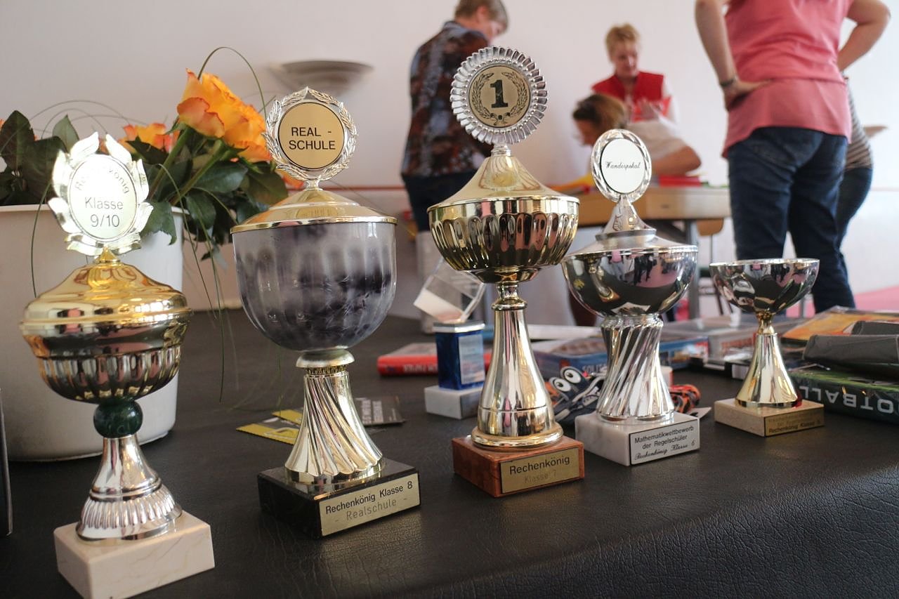 Damals hatte sie nur den Schülerinnen und Schülern der Klasse 6 den Wanderpokal überreichen können, im Laufe der Jahre kamen die Klassenstufen 5 bis 10 dazu. Immer unterstützt wurde die Matheolympiade dabei vom Landratsamt, das auch heute Urkunden und Geschenke sponsorte, der Kreissparkasse, dem Buchhaus Rose und dem Kultusministerium.