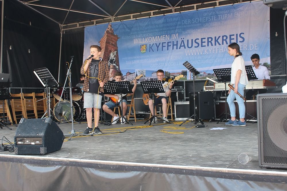 Dicht wurde es in der Mittagsstunde am ehemaligen Bahnhof Jecha. Fahrräder über Fahrräder und zusätzlich kamen noch jede Menge Spaziergänger dazu. Vormittags spielte das Bergmannsblasorchster und am Nachmittag: The5Sonders (13:00-13:30 Uhr im Bild), The Little Bigband (14:00- 16:00 Uhr), Combo des Carl Schroeder Konservatoriums (16:00-17:00 Uhr)