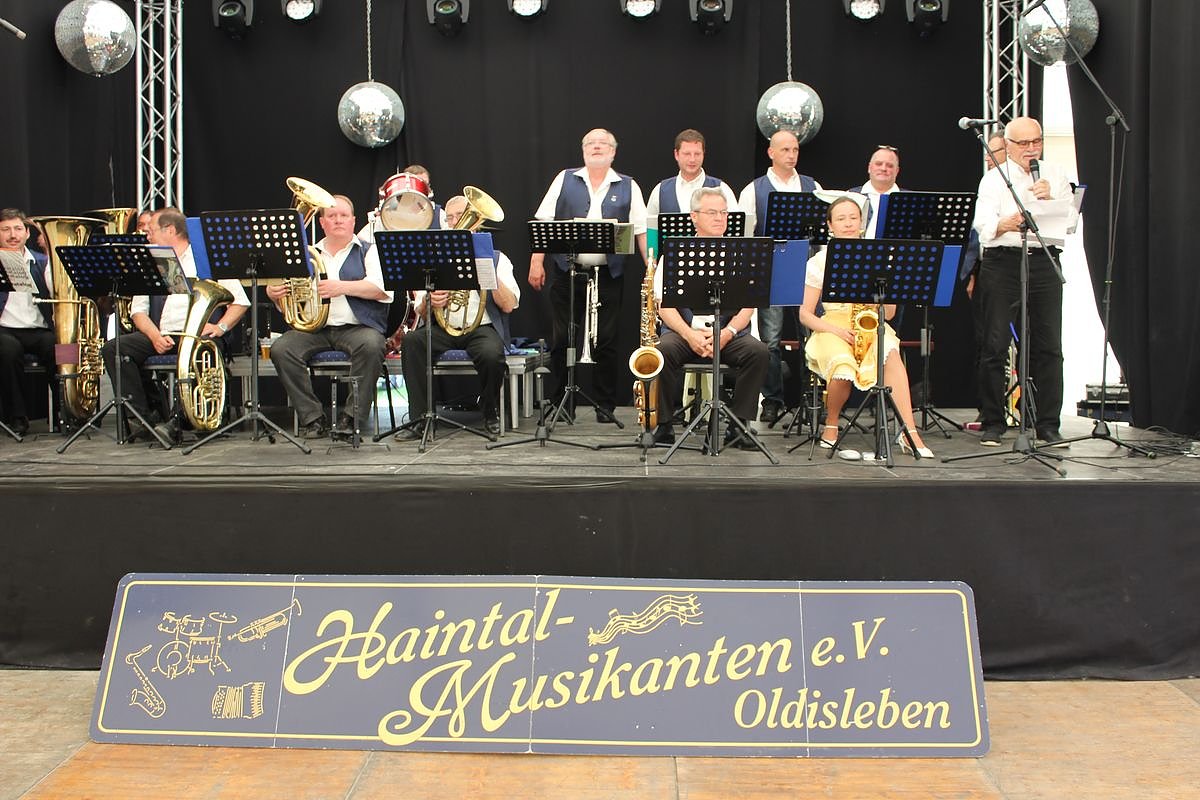 Aber nicht nur die Vereine lockten ins Festzelt. Wer schon bei den Händlern und auf dem Rummel bei den Schaustellern war, wollte sich auch mal ausruhen. Die Haintalmusikanten aus Oldisleben boten bei einem zünftigen Frühschoppen mit Blasmusik im Festzelt in der Zeit von 11.00 - 14.00 Uhr den notwendigen musikalischen Rahmen. Helmut Hochfeldt in seiner Moderation forderte auf, im nächsten Jahr sollten sich alle Verein präsentieren.