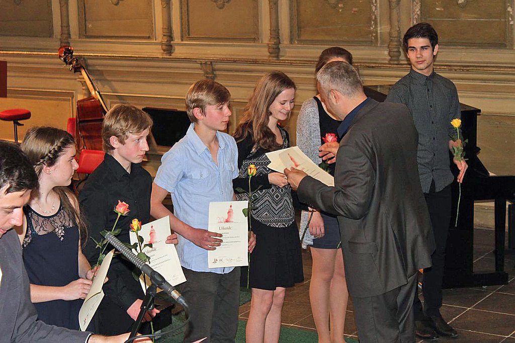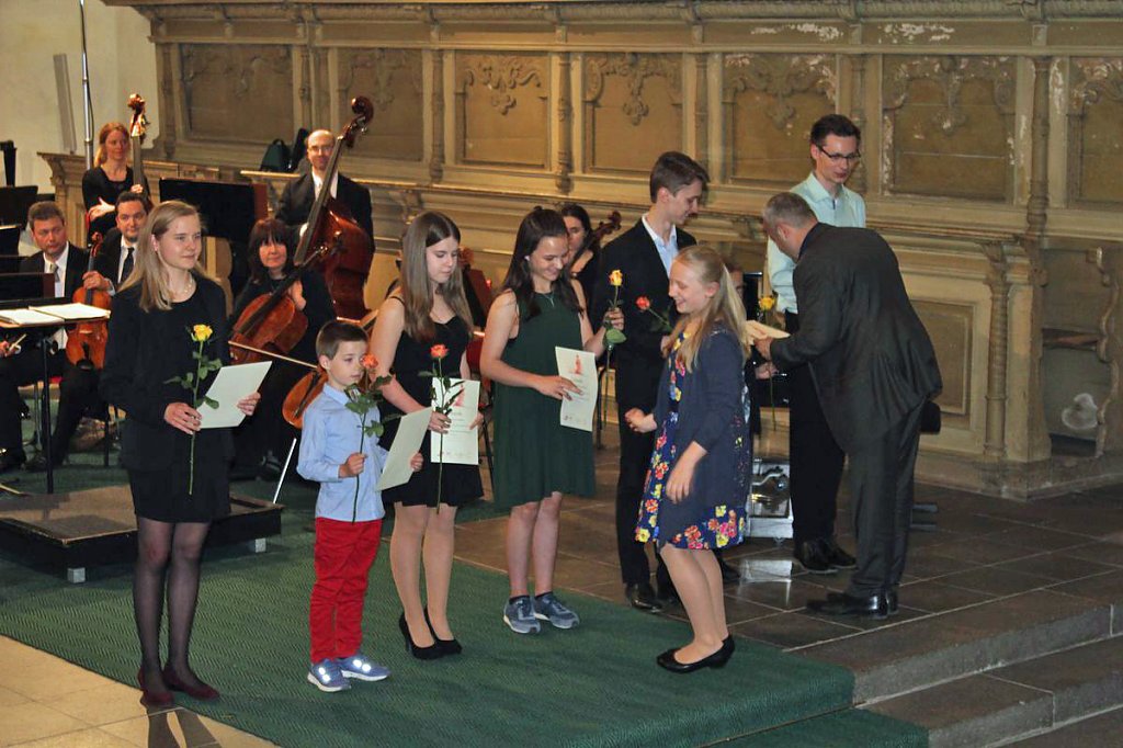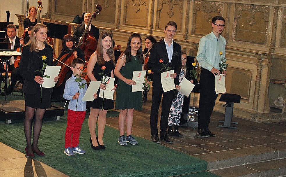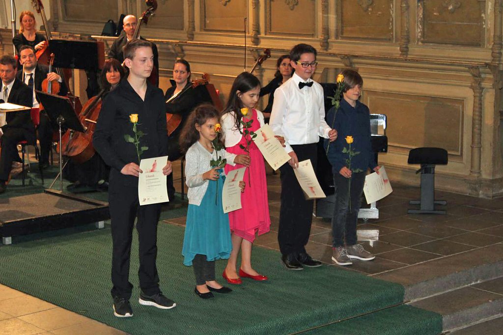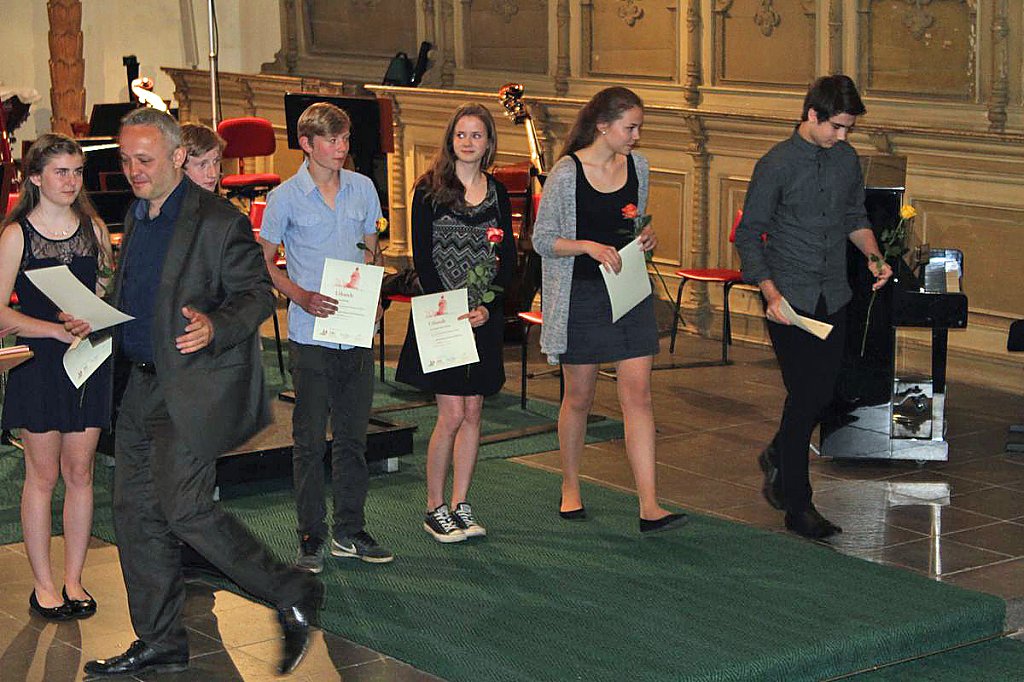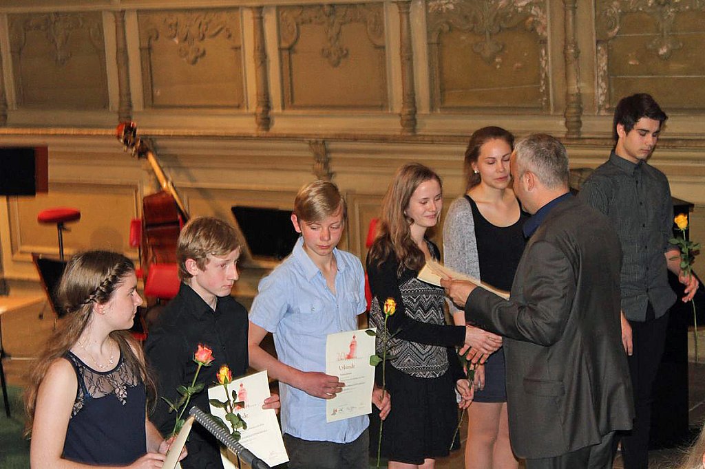 Dabei erhielten die Teilnehmer ihre Urkunde mit Angabe des Prädikats und der Punktzahl. Begleitet wurde die Veranstaltung vom Lohorchester Sondershausen unter der Leitung von Sergi Roca. Fünf Preisträger des Wettbewerbs hatten hier die Möglichkeit, ihre Leistung noch einmal in Begleitung eines Profiorchesters einem begeisterten Publikum zu präsentieren.