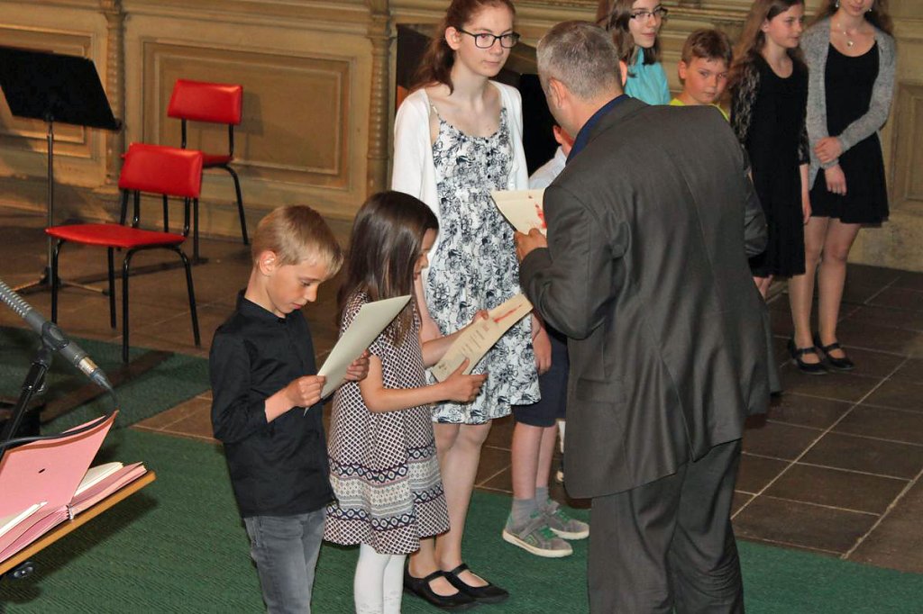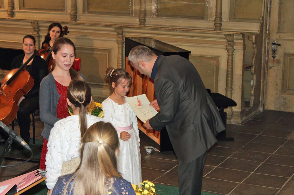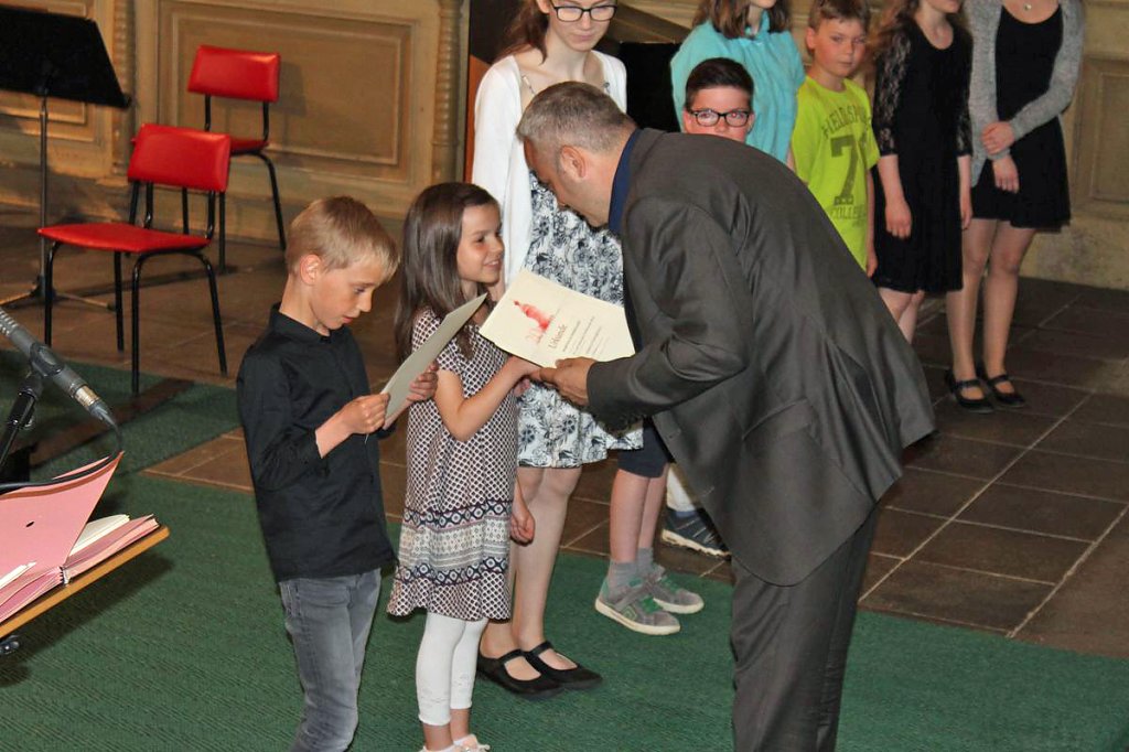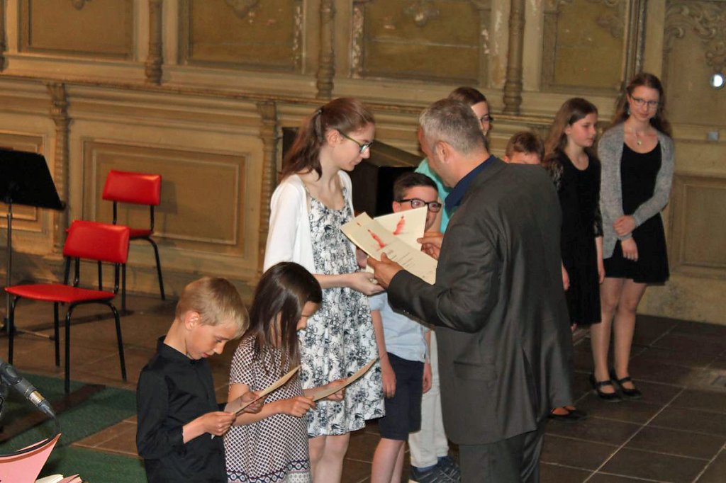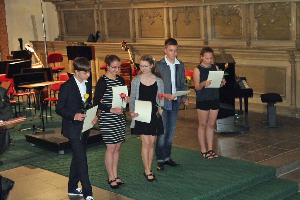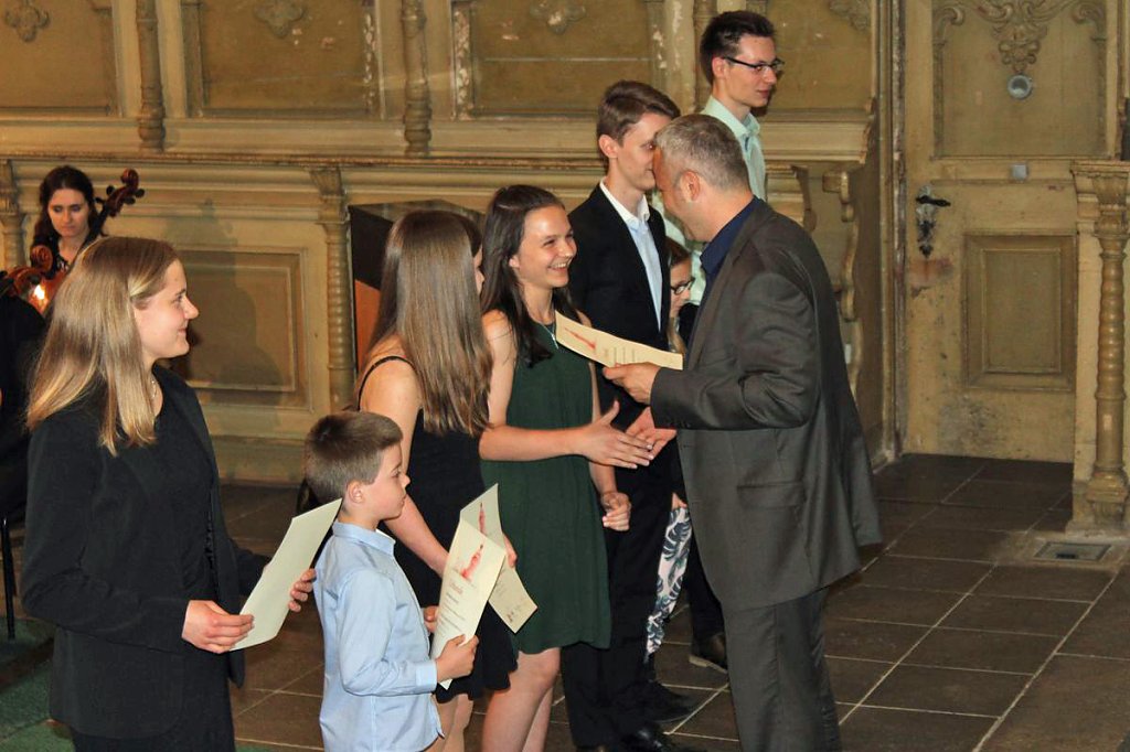 Dabei erhielten die Teilnehmer ihre Urkunde mit Angabe des Prädikats und der Punktzahl. Begleitet wurde die Veranstaltung vom Lohorchester Sondershausen unter der Leitung von Sergi Roca. Fünf Preisträger des Wettbewerbs hatten hier die Möglichkeit, ihre Leistung noch einmal in Begleitung eines Profiorchesters einem begeisterten Publikum zu präsentieren.
