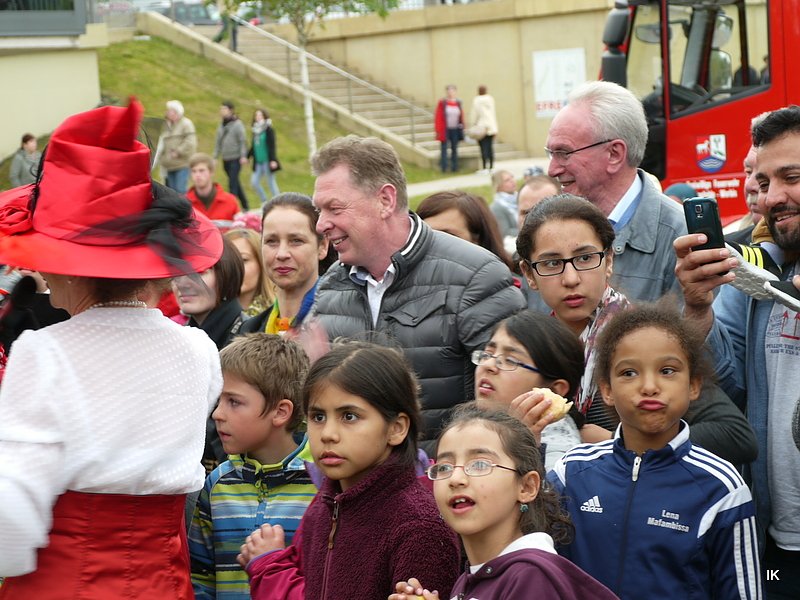 Die neuen Mitbürger nahmen des Festauftakt mit großer Freude und Neugierde auf. Überall filmten sie mit den Handys das Geschehen auf der Bühne. Die Kinder hatten große Freude, dort mittanzen zu dürfen.