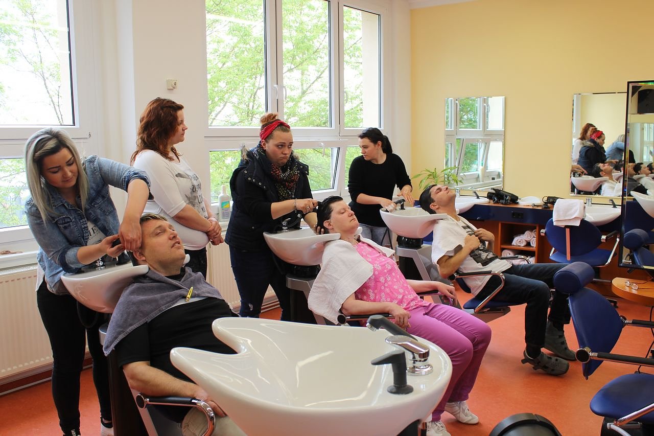 Die Berufsschule unterstützt die Initiative der Lebenshilfe Leinefelde-Worbis, den geistig behinderten Menschen als Kunden akzeptierter wahrzunehmen. Auf Einladung der Schulleitung trafen sich eine Gruppe behinderter Menschen mit den Auszubildenden der Abschlussklasse der Friseure im Friseur-Kabinett der Berufsschule.